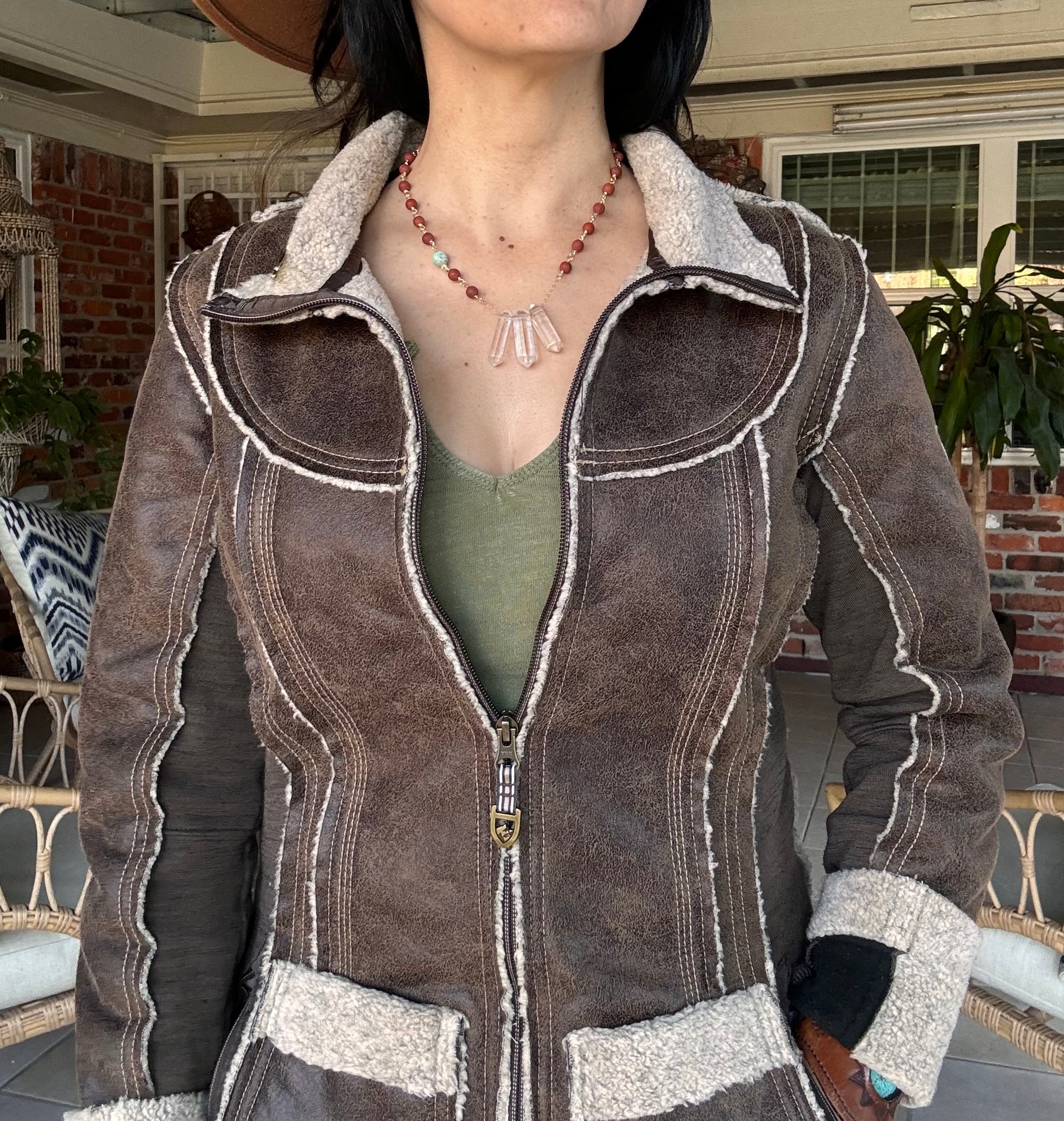Make a statement with this striking quartz point and matte red jasper necklace! This piece features crystal points that give a rustic, southwestern feel, and a pop of genuine turquoise to complete the look. Be ready for compliments wherever you go!