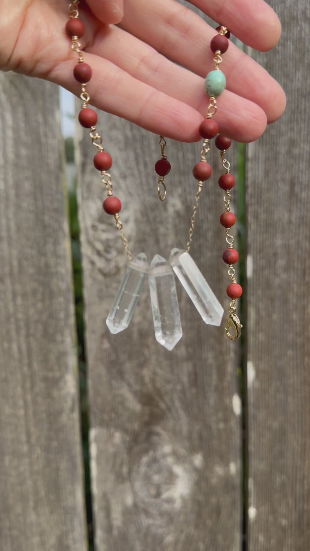 3 Quartz point and matte red jasper necklace