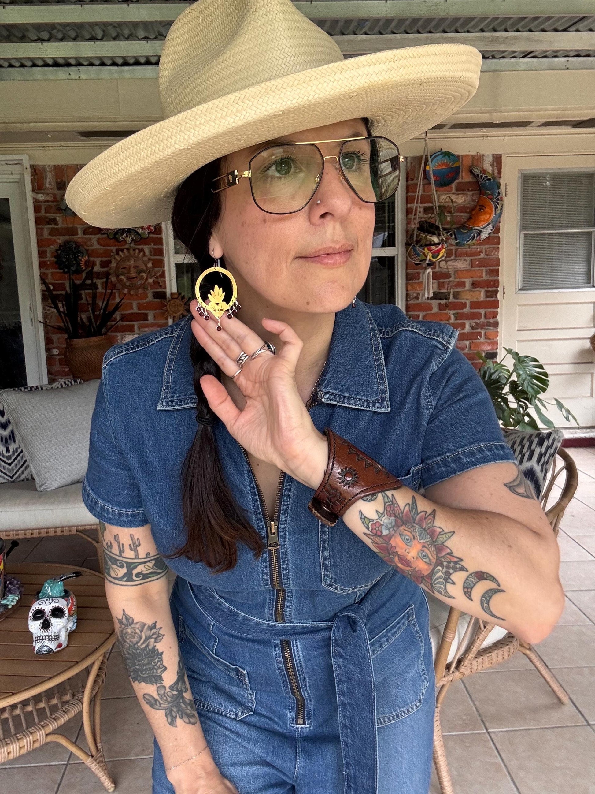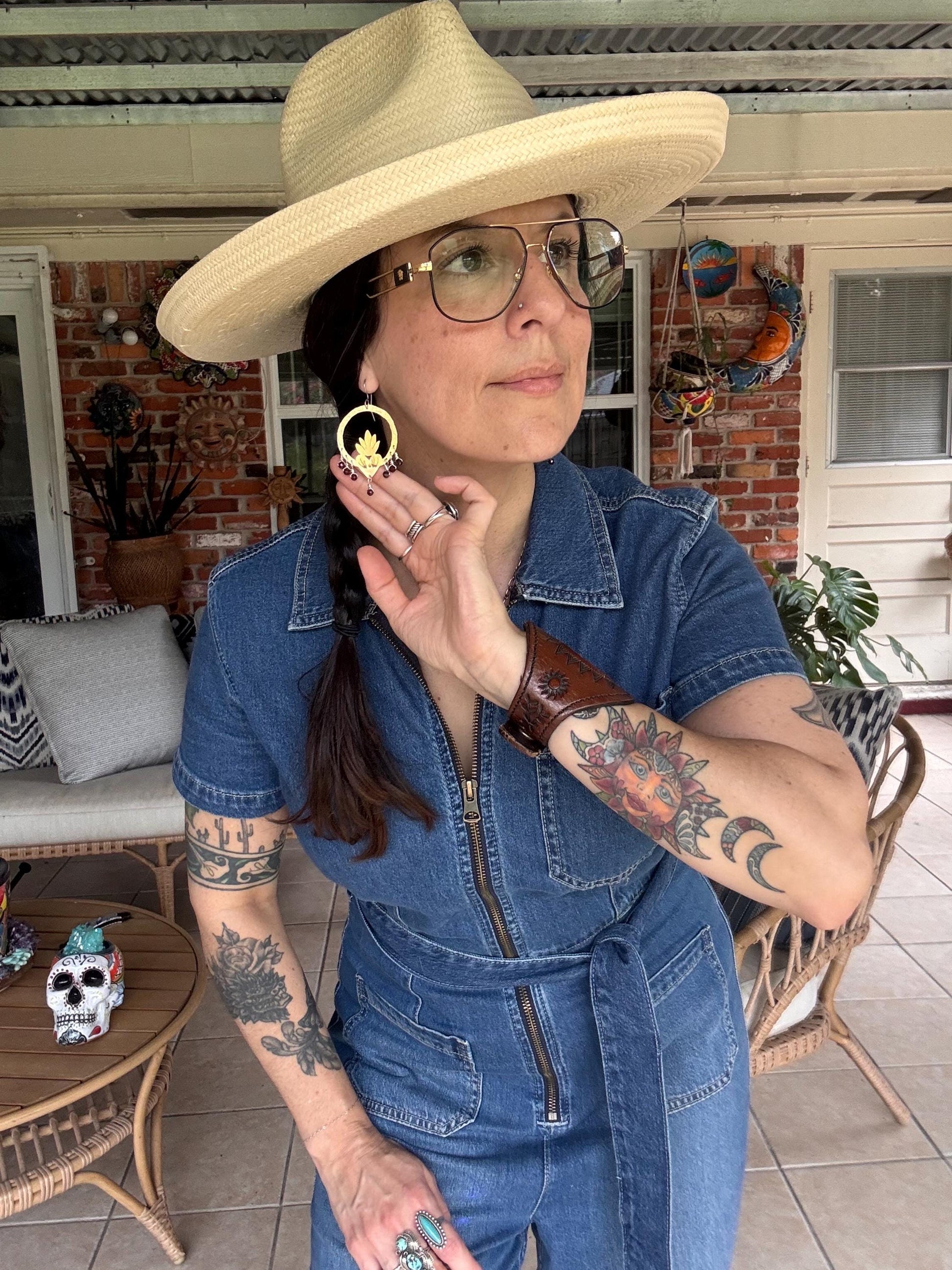 These fiery brass hearts are absolutely spellbinding! Each earring features a sacred eye nestled within a flaming heart design, adorned with deep red garnets that catch the light with mysterious allure. The mixed metal construction blends warm brass tones for an edgy, eclectic vibe that celebrates both spiritual symbolism and bold style. Perfect for anyone who loves jewelry with meaning and personality—wear them as a reminder that passion and protection go hand in hand. A playful twist on sacred geometry that's sure to turn heads.