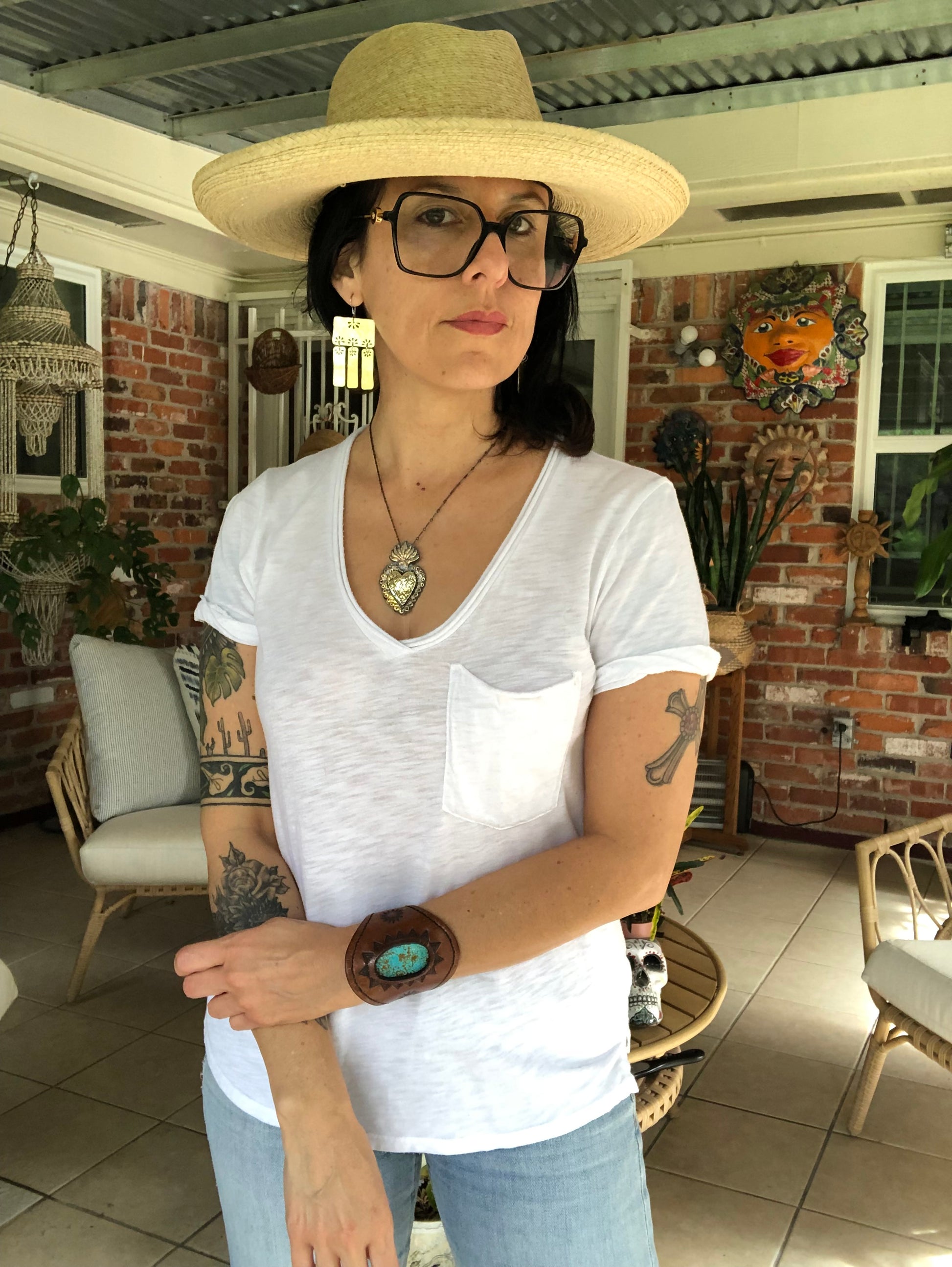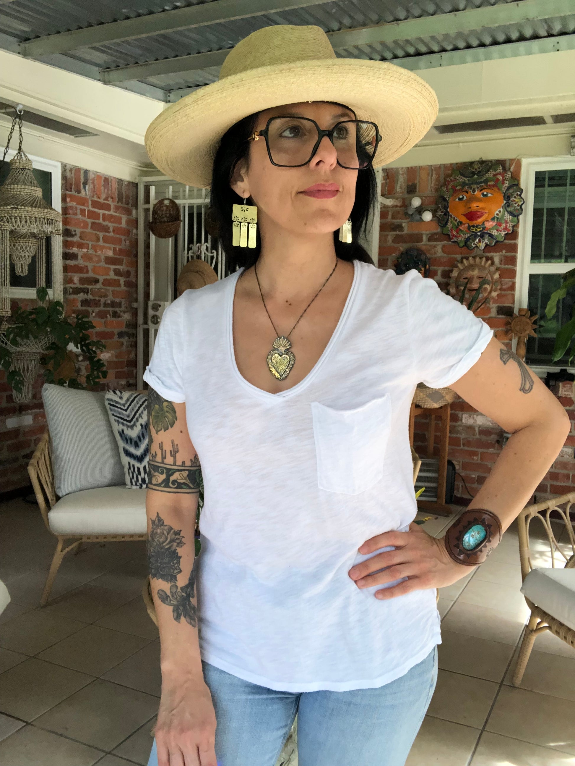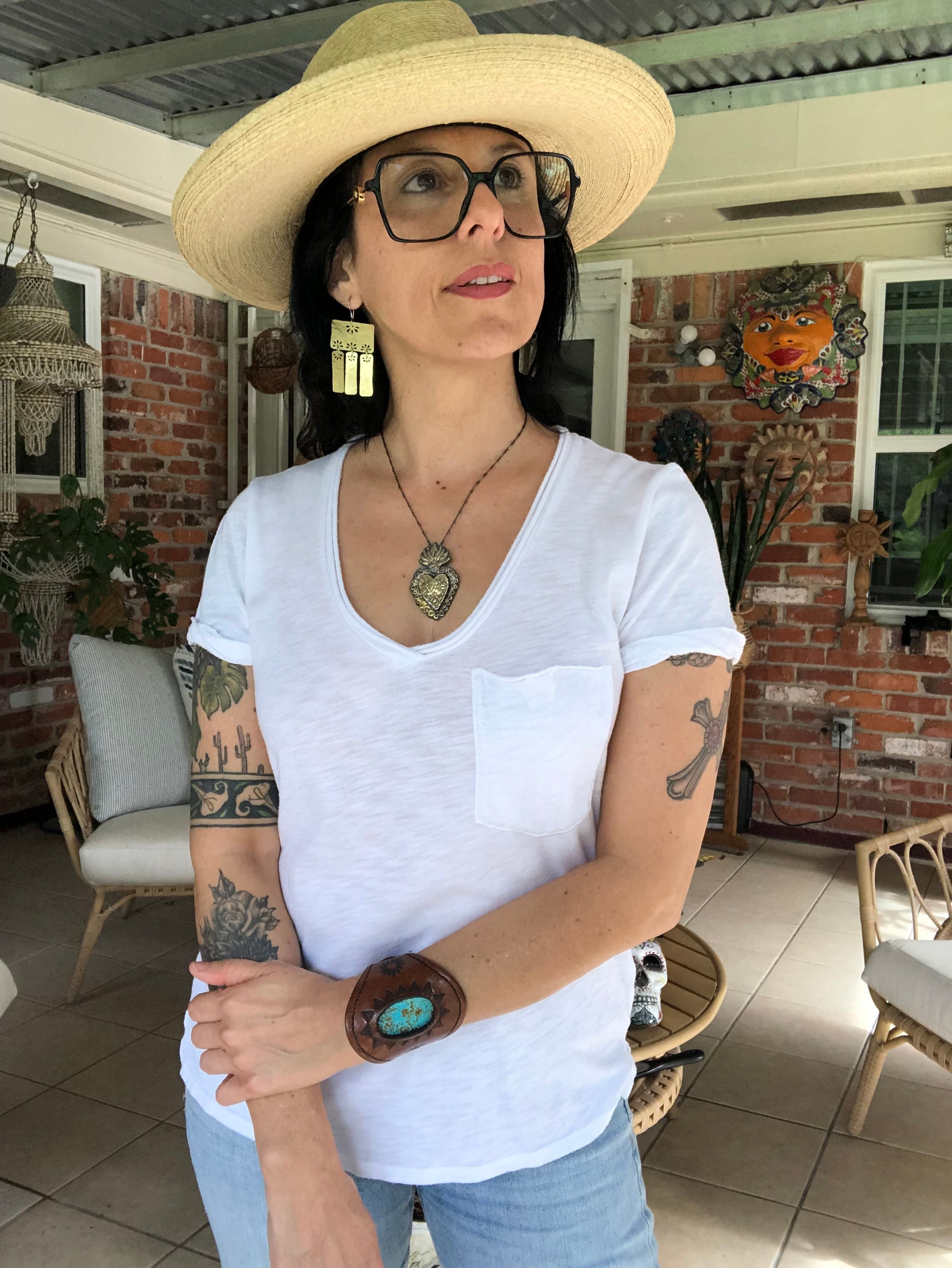 Wear your art on your ears! These artisan-crafted Brass Floral Folklore chandelier earrings bring vibrant folklore elements to life. Brass rectangles adorned with tiny floral designs are sure to turn heads and make a statement. Shine on!