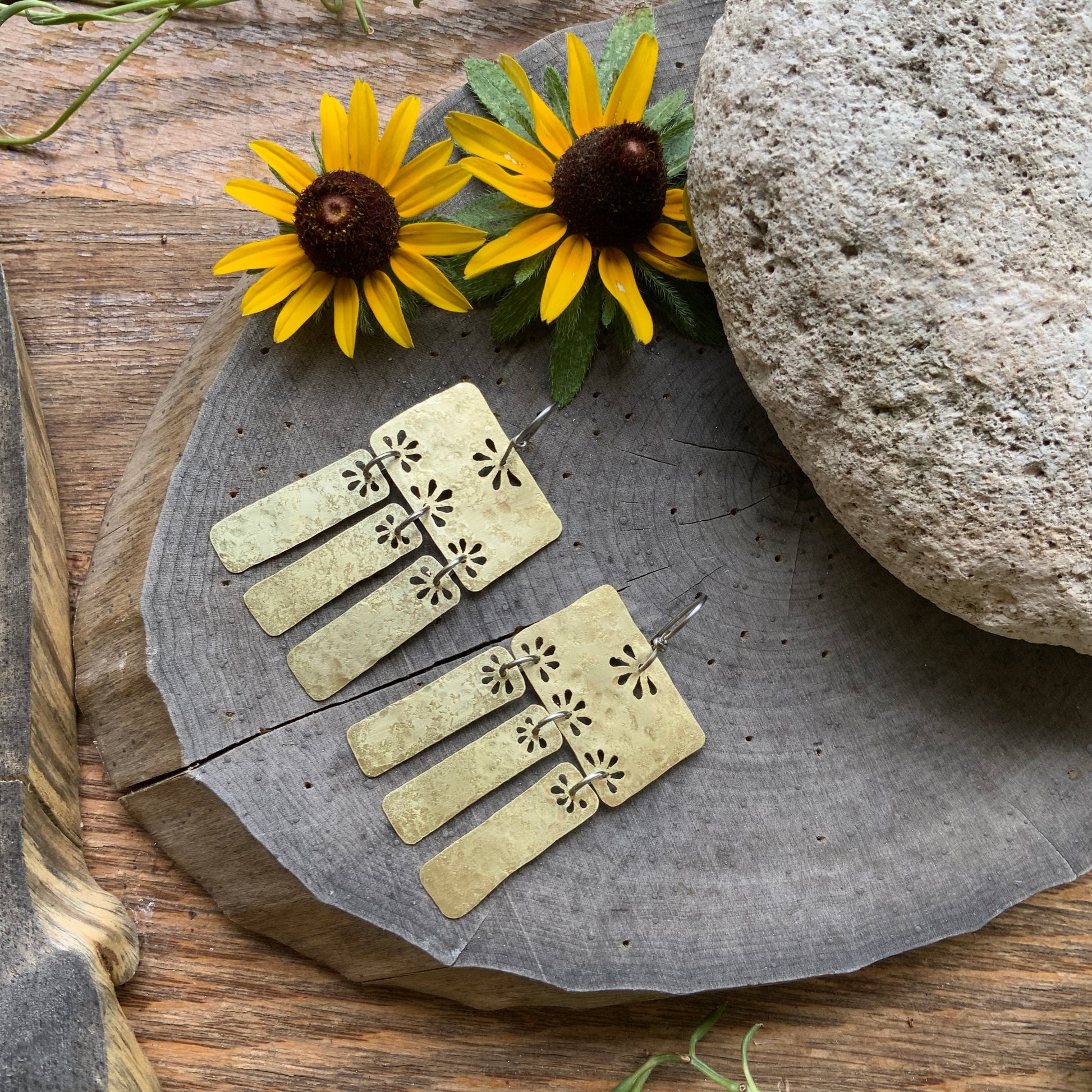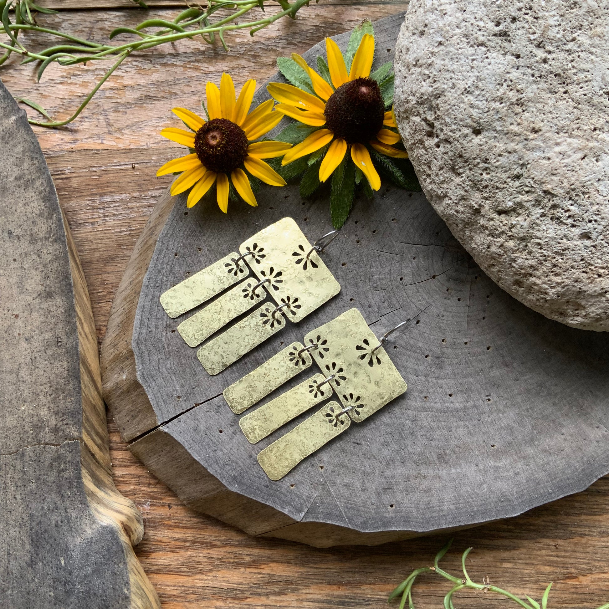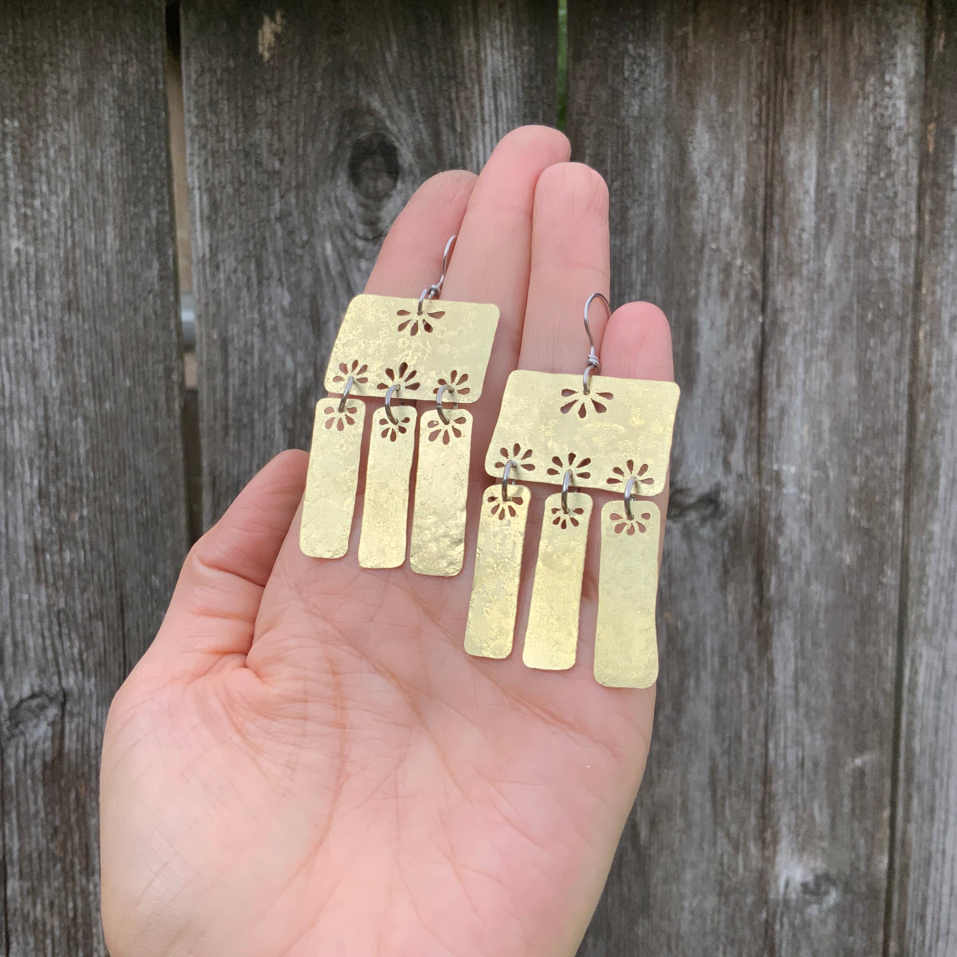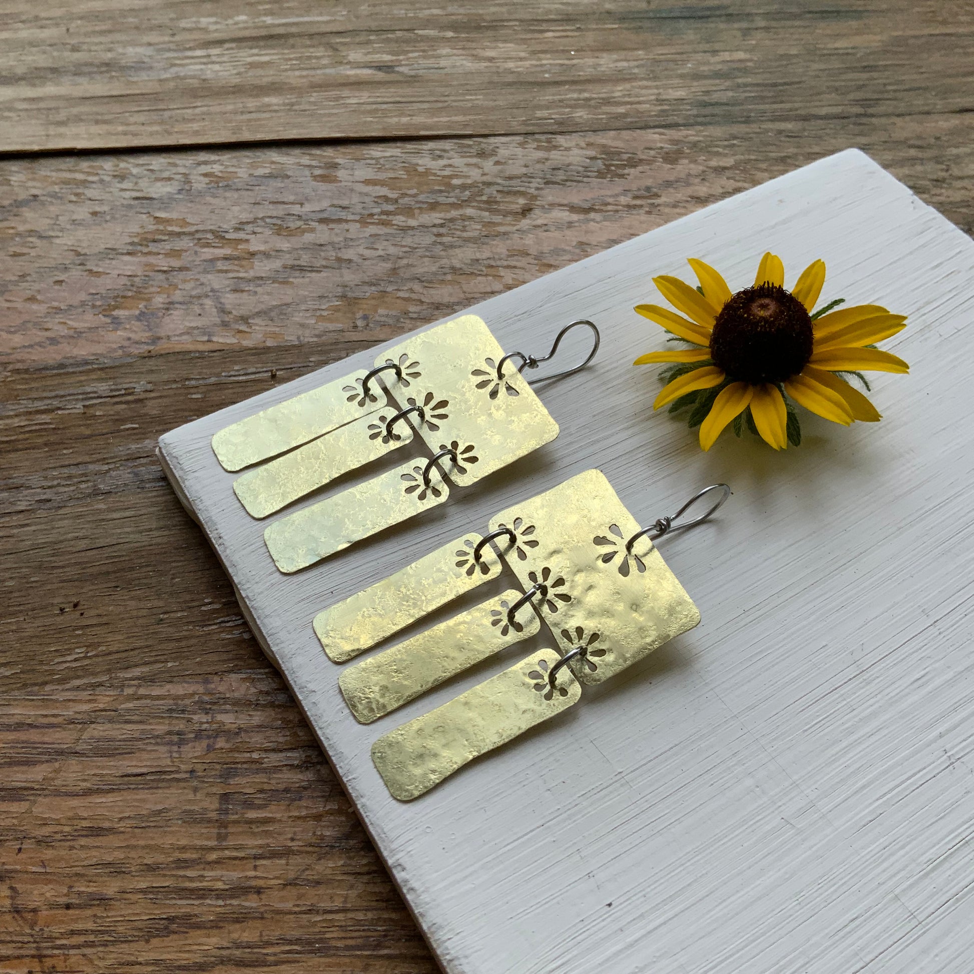 Floral Folklore brass bar chandelier earrings