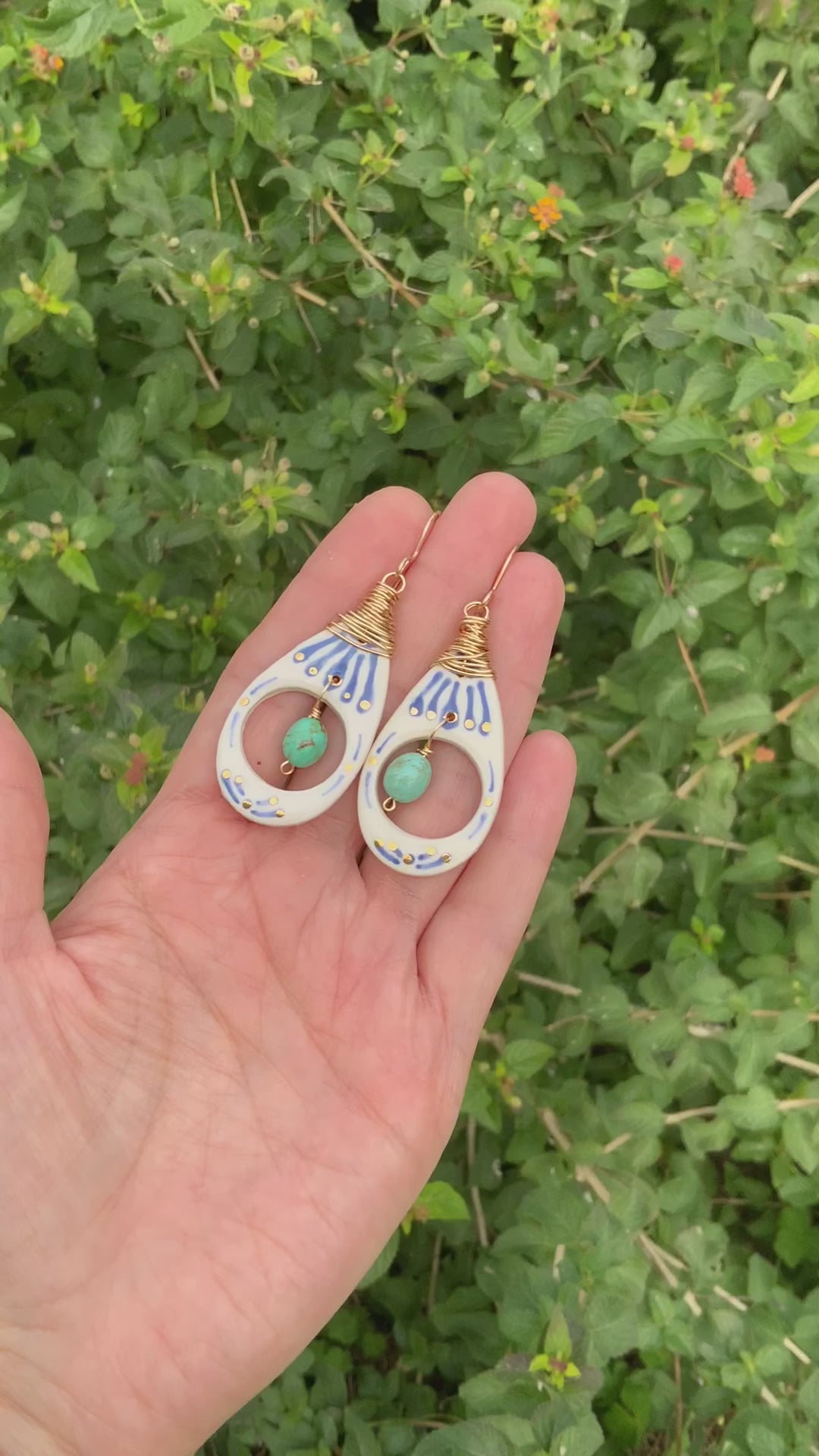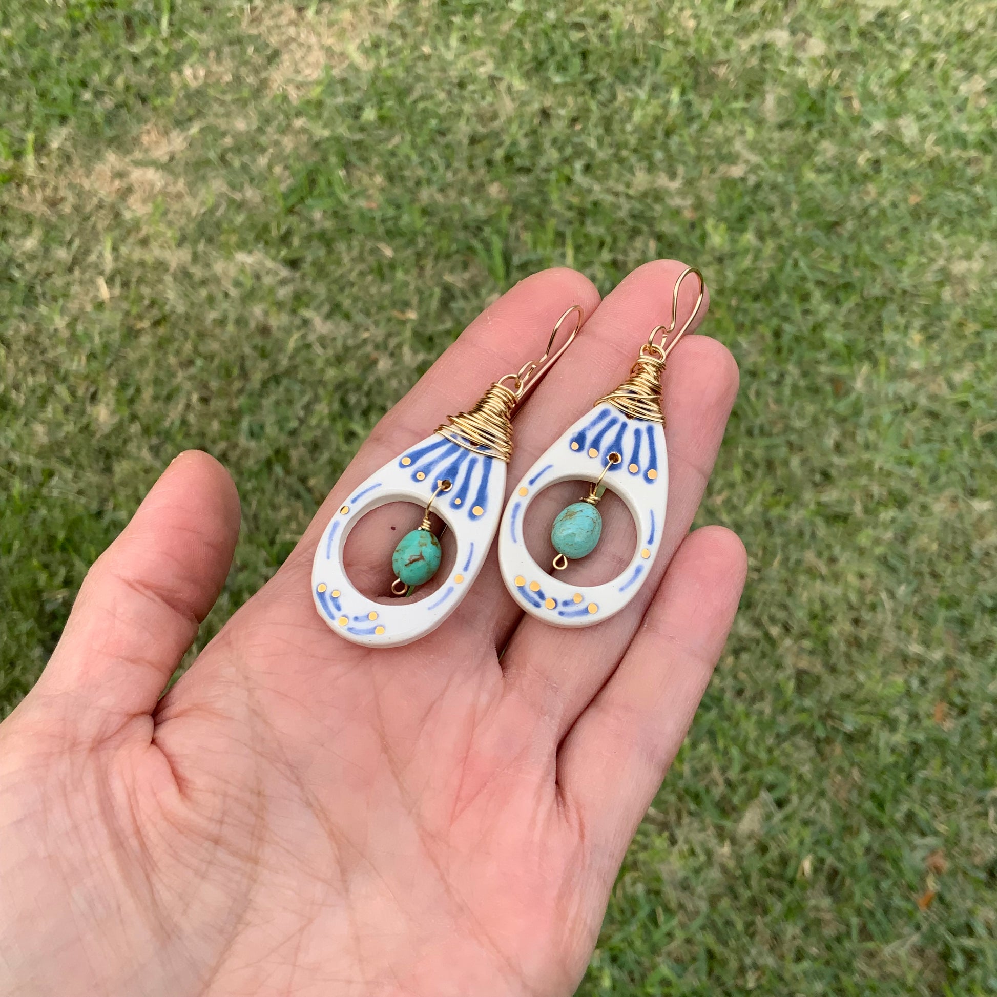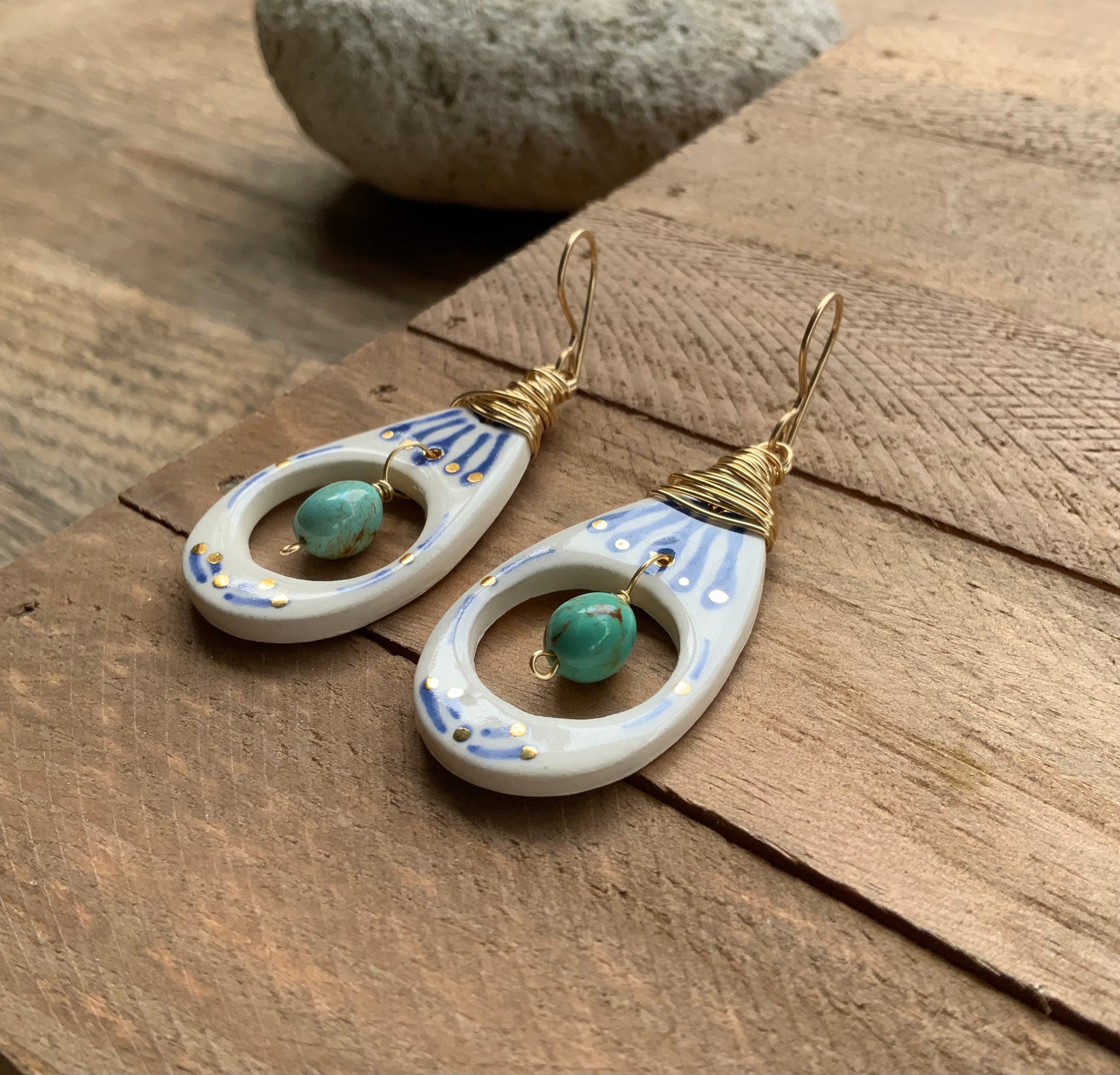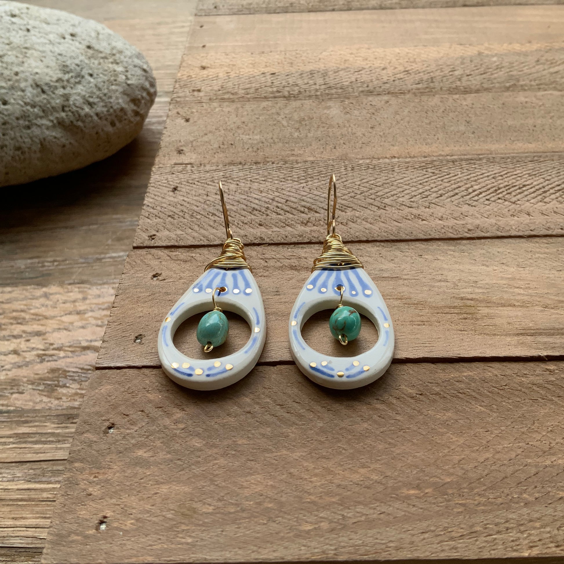 Ceramic Tribal drop and turquoise nugget earrings