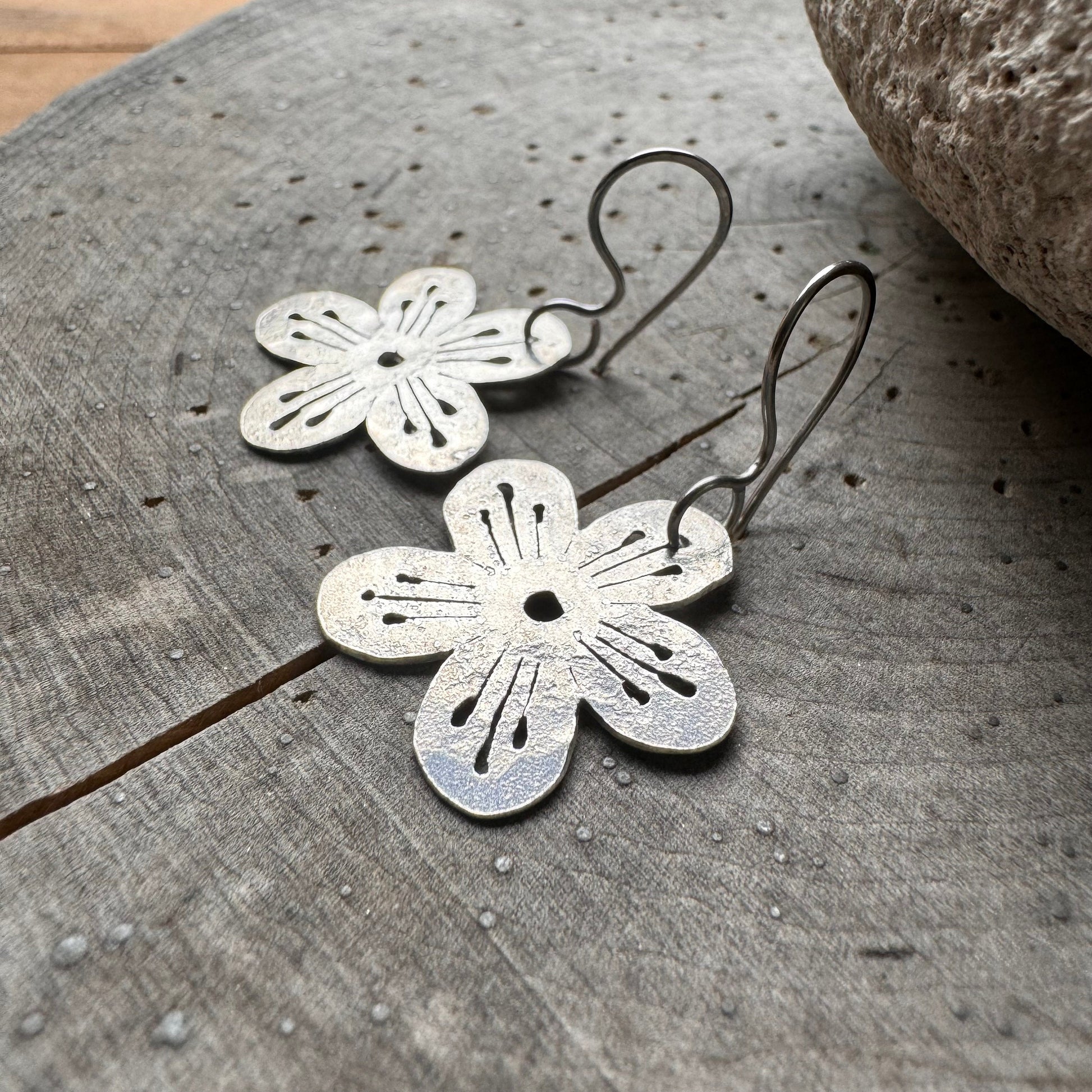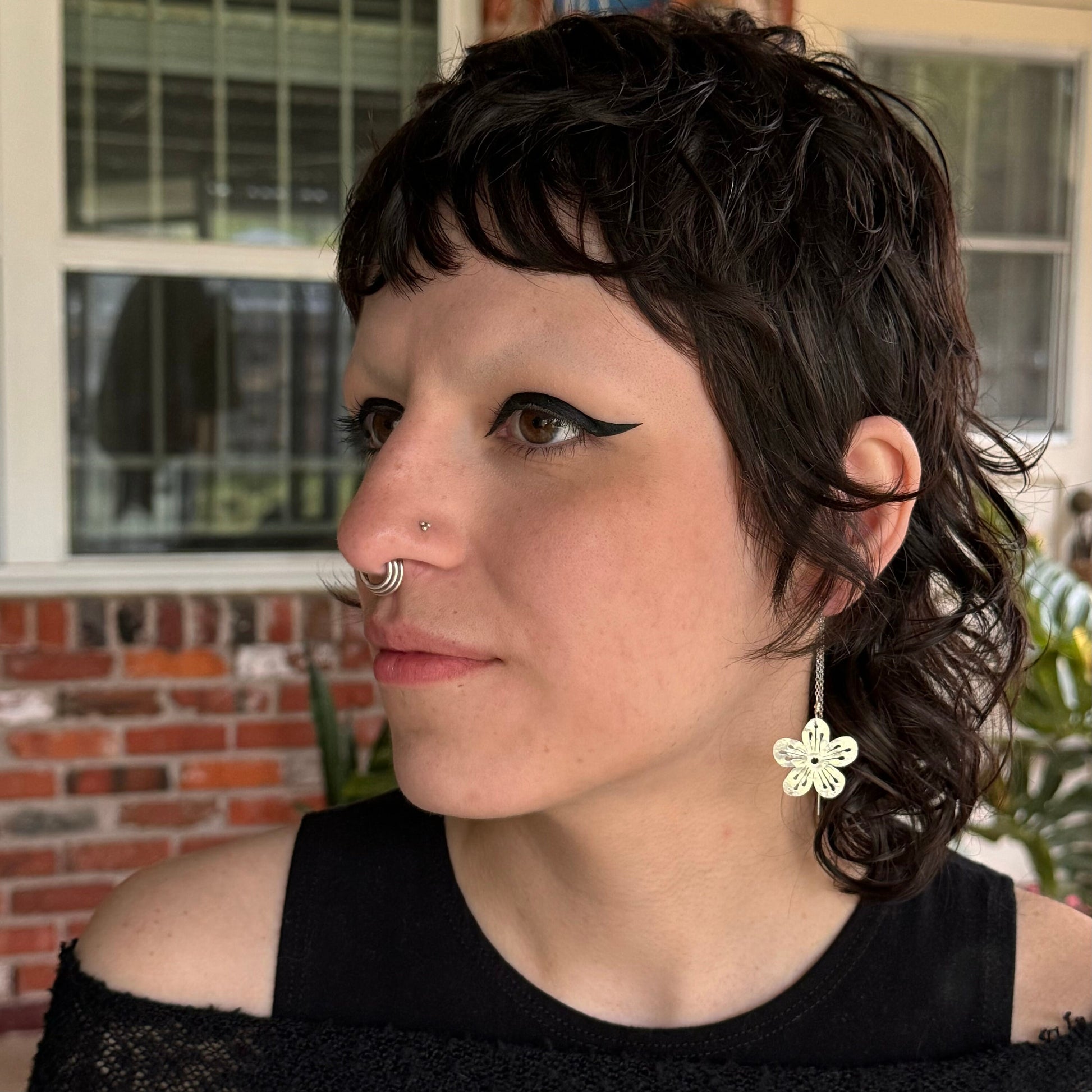 These delicate daisy threader earrings bring a touch of whimsy to your everyday look. Hand-cut from lightweight aluminum, each flower dangles gracefully through the ear for an effortless, playful vibe. Perfect for flower lovers who want jewelry that's as charming as it is comfortable to wear. Lightweight enough for all-day wear, these little blooms add a cheerful pop of personality to any outfit.