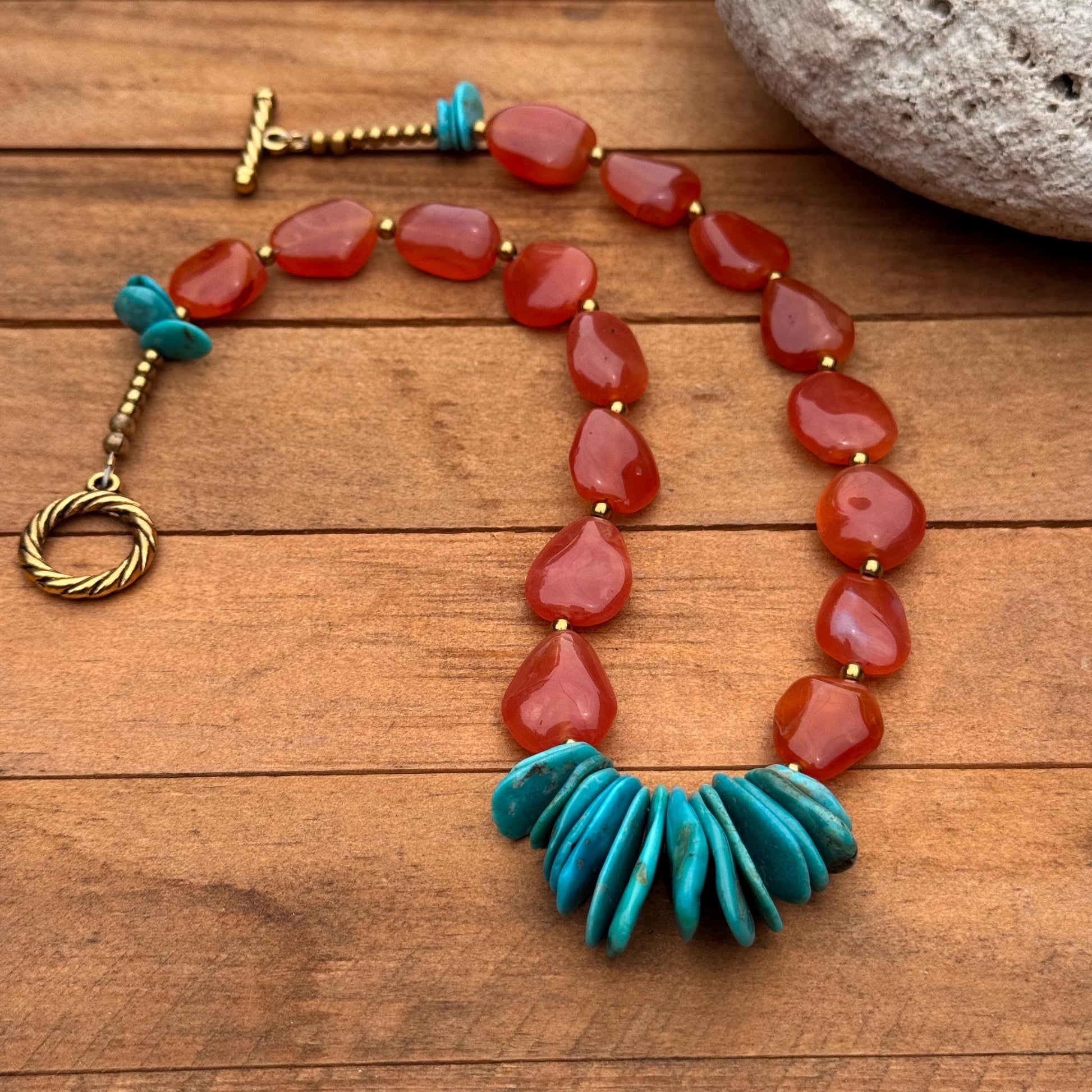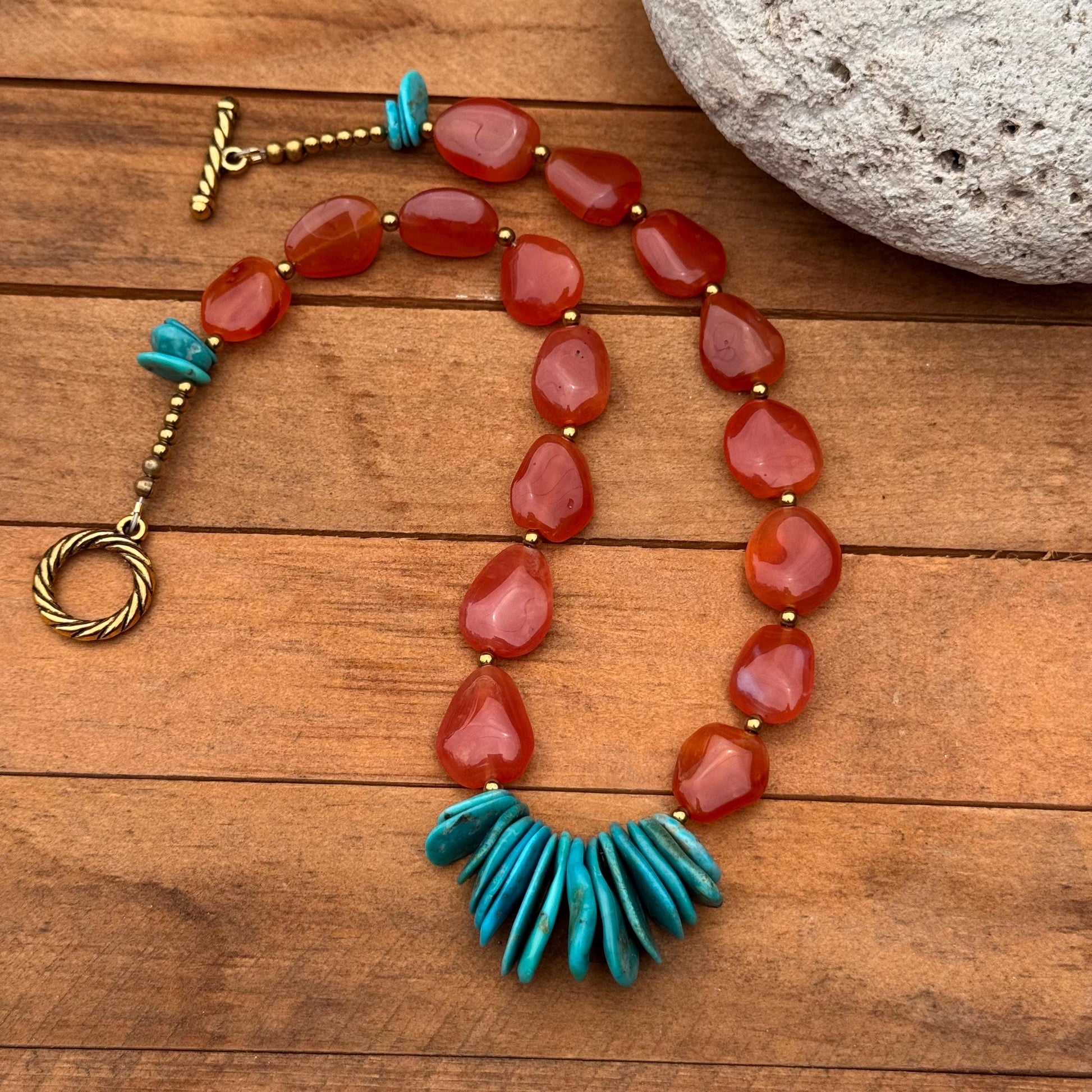 Add a splash of vibrant charm to your look with this genuine turquoise cluster and orange chalcedony necklace by Adriana. Bursting with rich, natural colors, each stone dances with sunny energy and earthy vibes. Perfect for brightening up any outfit, this playful piece brings a pop of color and a touch of handcrafted magic to your jewelry collection. Wear it and let your style shine as boldly as the stones themselves!