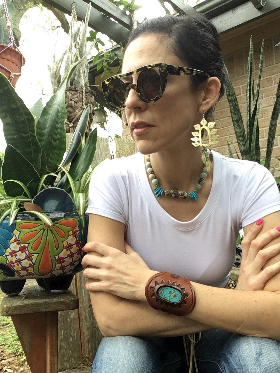 These statement earrings are where nature meets artisan craftsmanship! Each pair features hand-sawn brass leaves with a gorgeous hammered texture, crowned with vibrant turquoise stone accents that dangle like a delicate fringe. Perfect for adding a bohemian flair to any outfit, these beauties celebrate handmade details and organic shapes. Lightweight enough for all-day wear, bold enough to turn heads.
