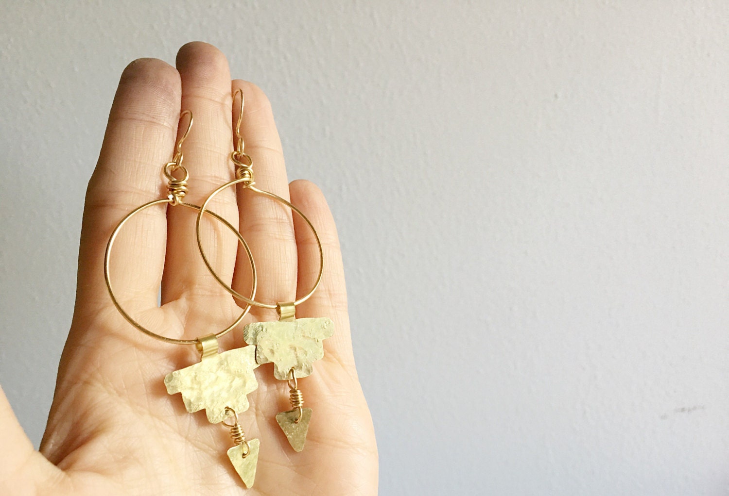 Step into history with these captivating hammered metal hoops, where ancient artistry meets modern flair. Each pair is hand-cut and crafted to capture the raw, organic beauty of Pre-Columbian design. The primitive dangle style swings with personality, bringing an earthy, bohemian vibe to any look. Perfect for those who appreciate jewelry with a story—bold, unique, and unapologetically unconventional. Wear your love of ancient cultures with style.