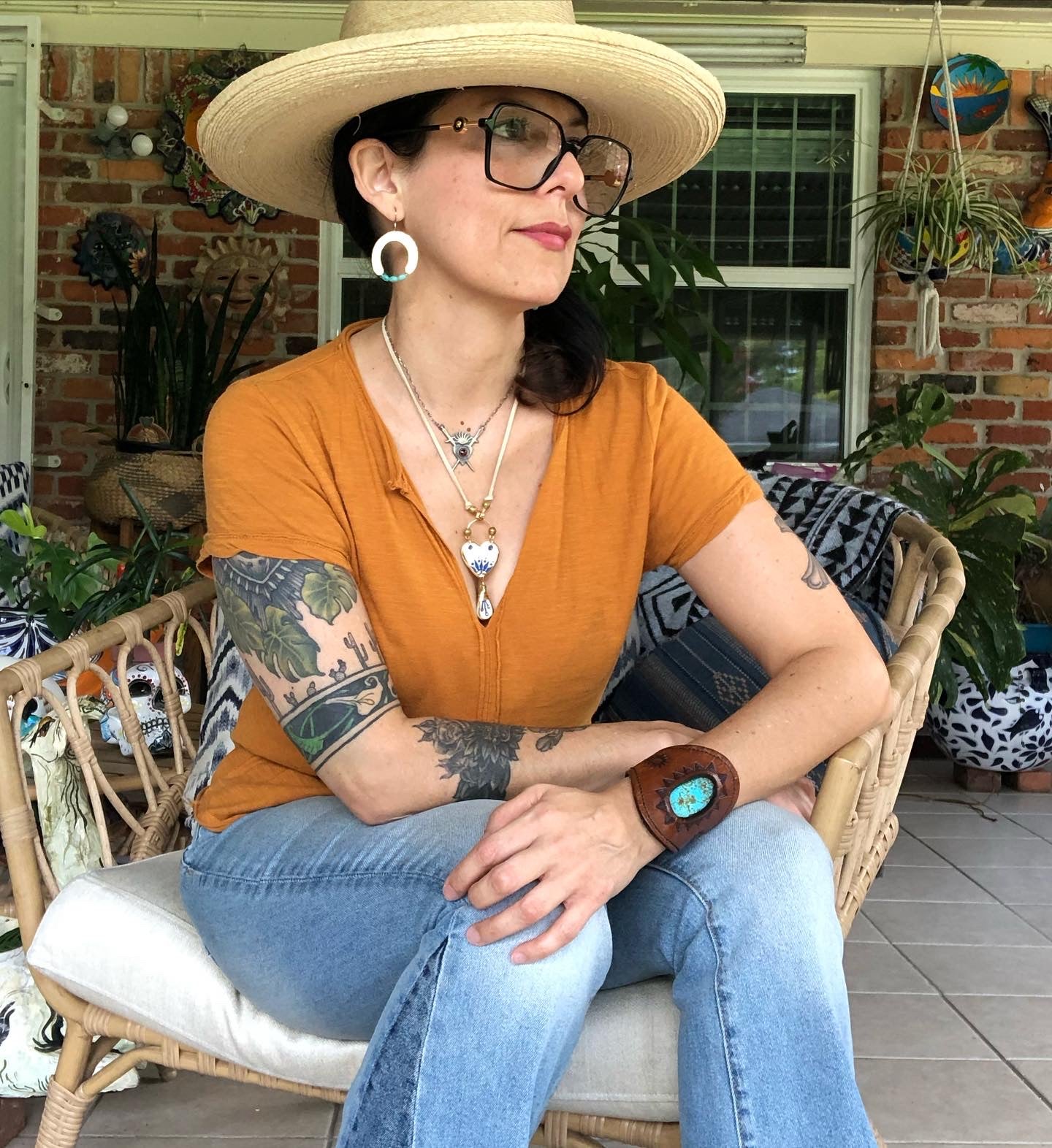 These rustic southwestern Hammered Brass Arch and genuine turquoise earrings are the perfect way to spice up your style! Each earring features a unique hammered brass arch and genuine turquoise stone that will add a hint of bohemian flair to your look.