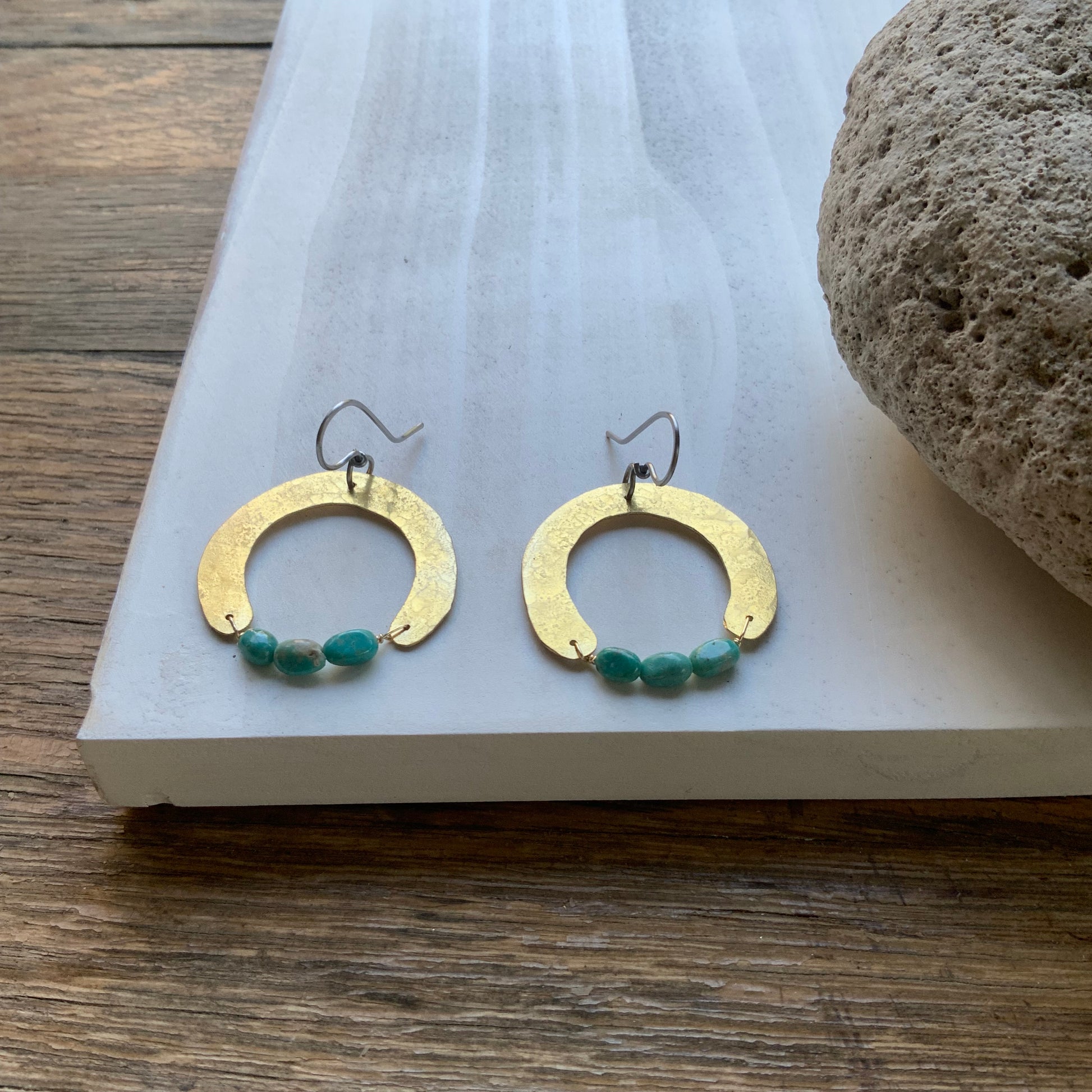 Hammered Raw Brass Arch and genuine turquoise earrings
