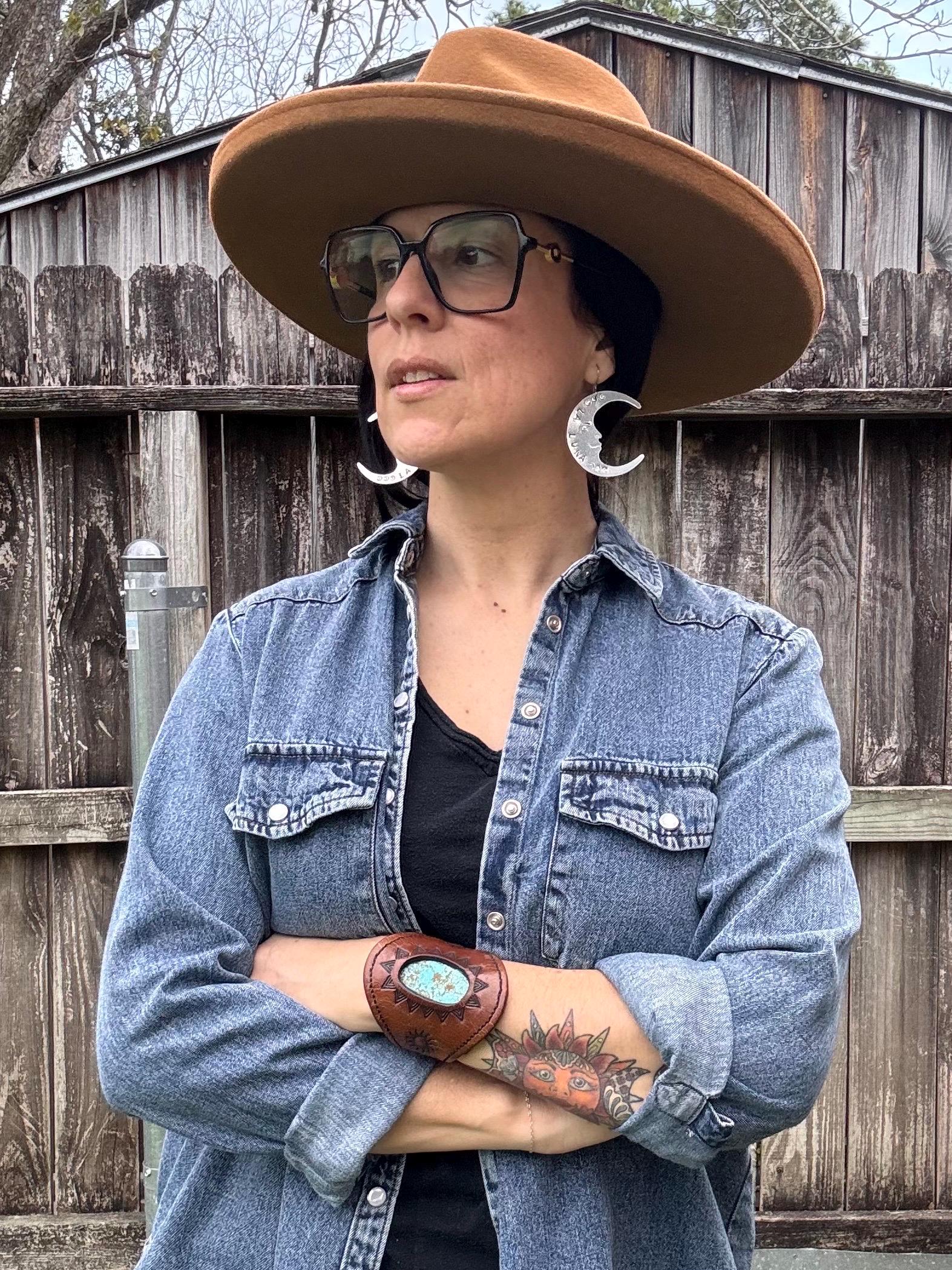 Hand Stamped La Luna Earrings: Crescent Moon Face, Stainless Steel