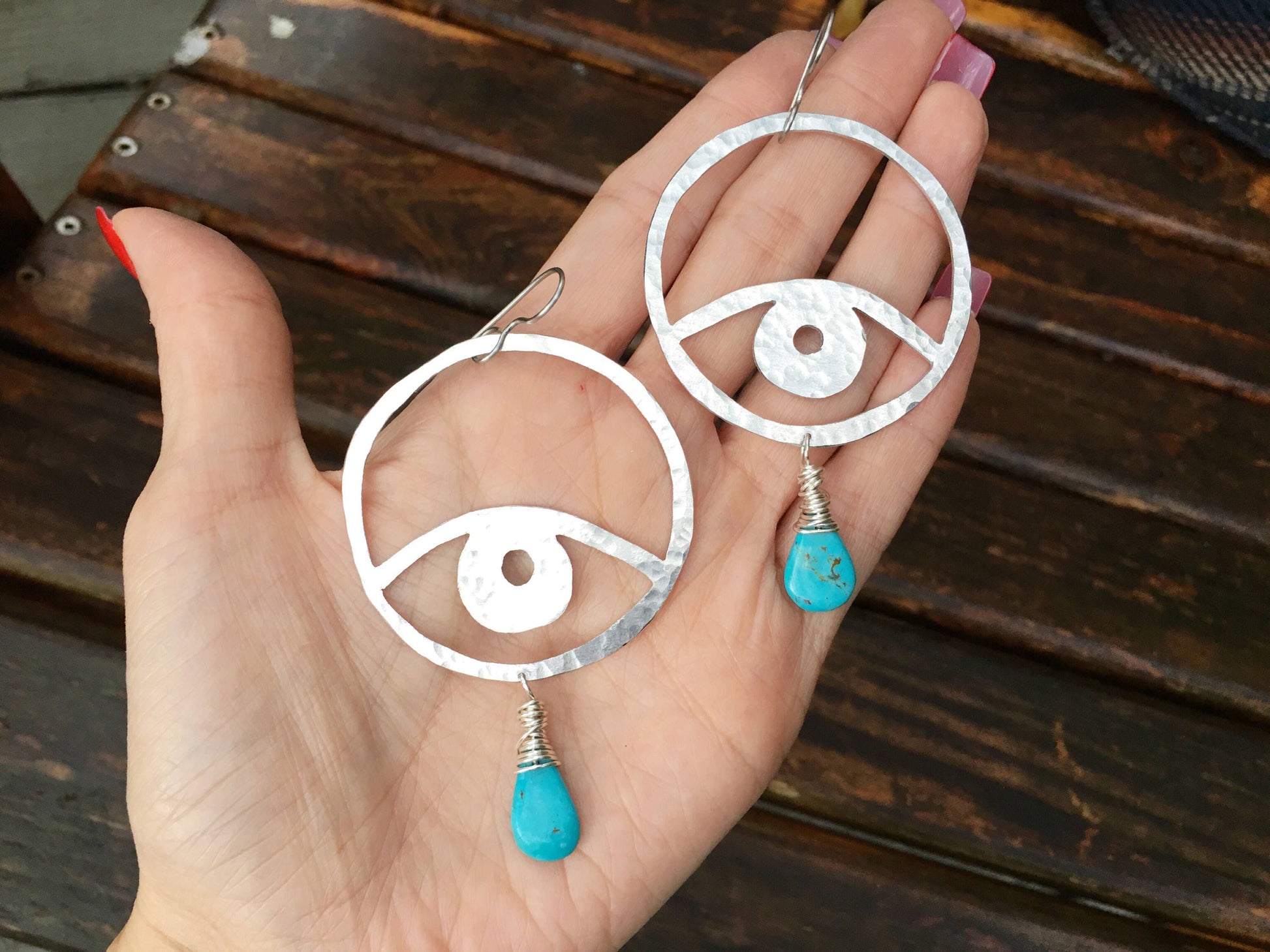 Handmade Aluminum Eye Earrings with Turquoise Drop