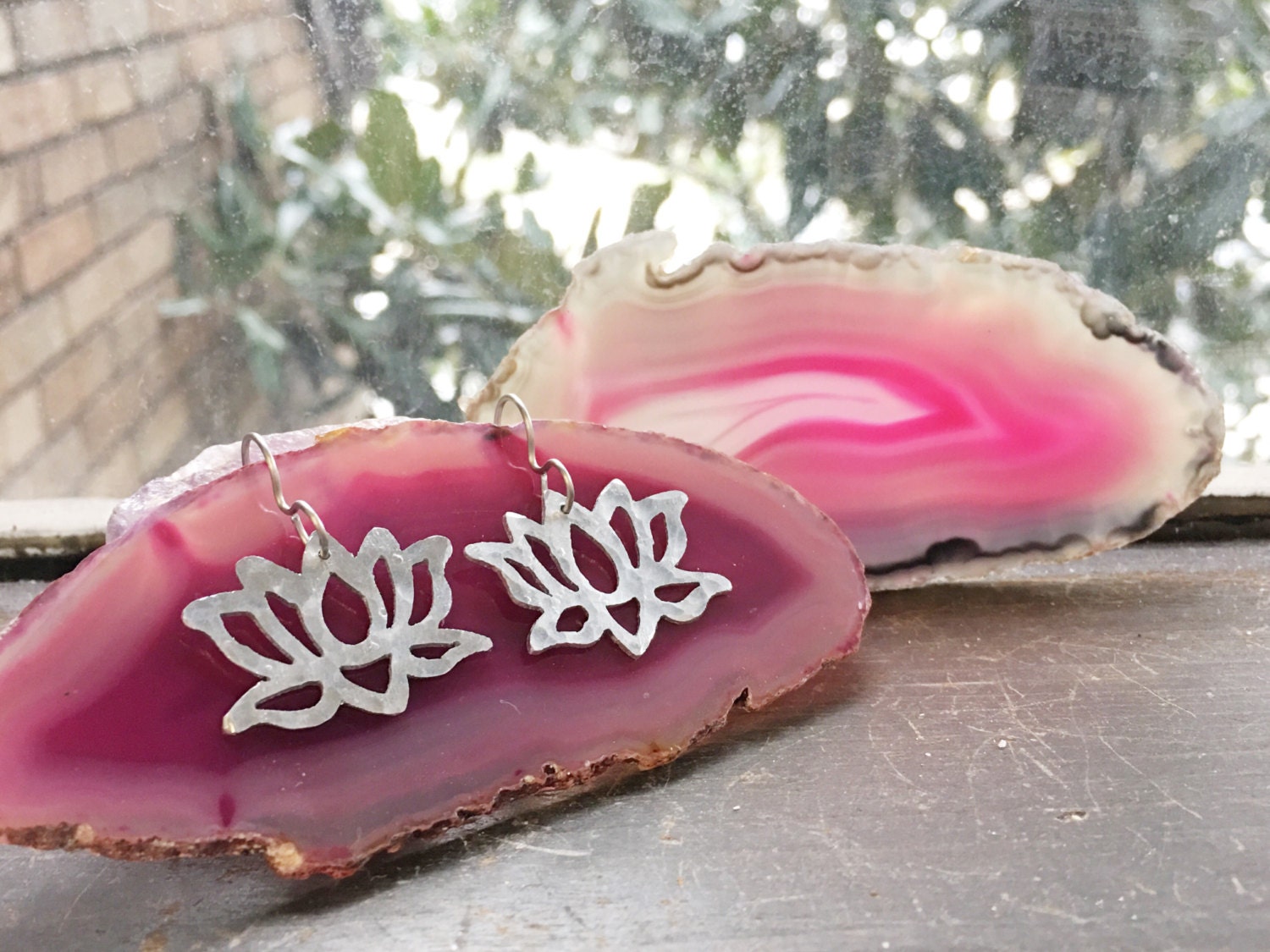 Handmade Aluminum Lotus Flower Earrings: Dangle Jewelry