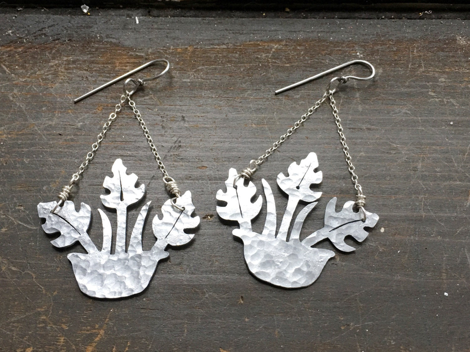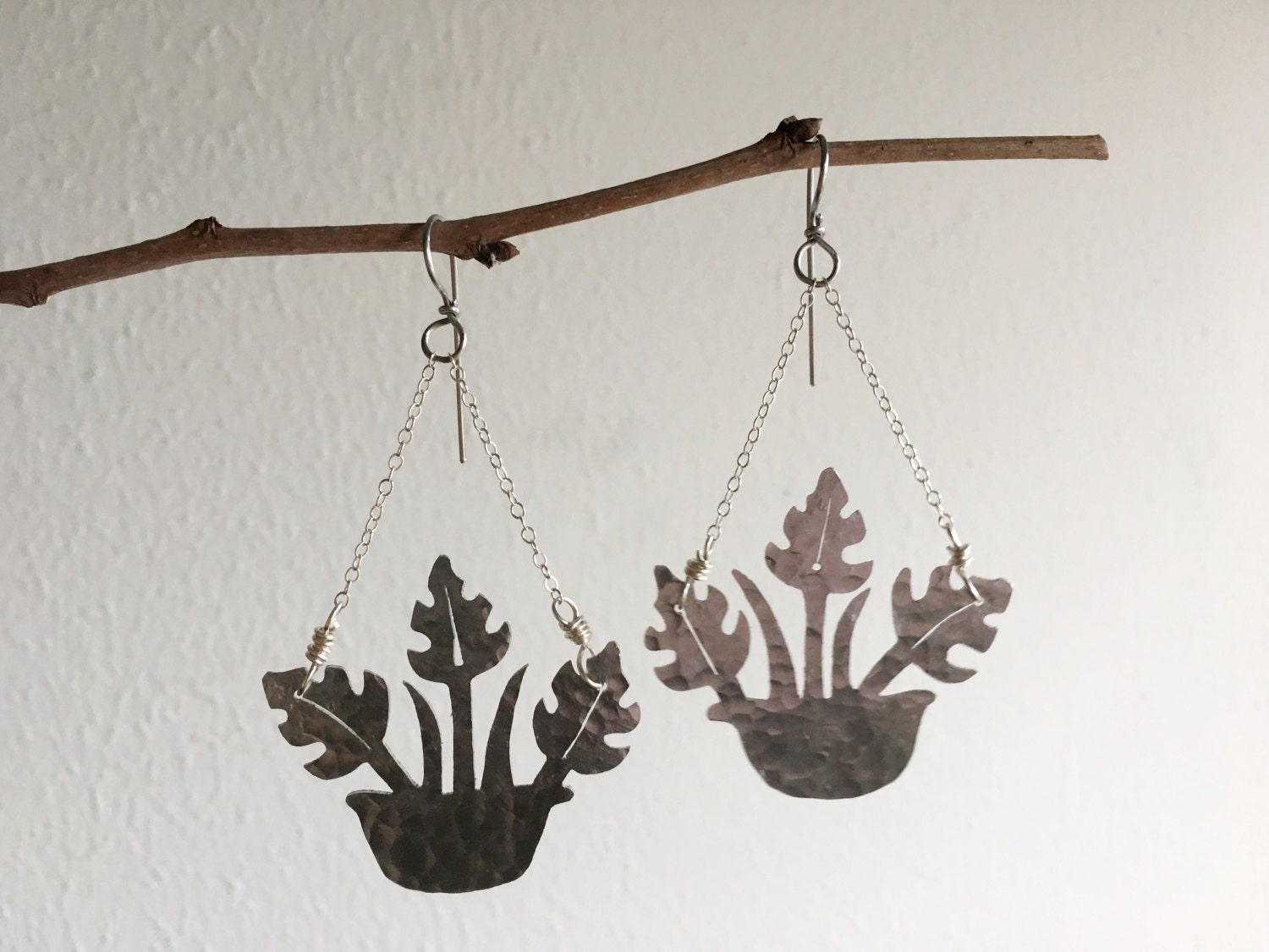 Handmade Aluminum Philodendron Plant Earrings: hanging planter earrings