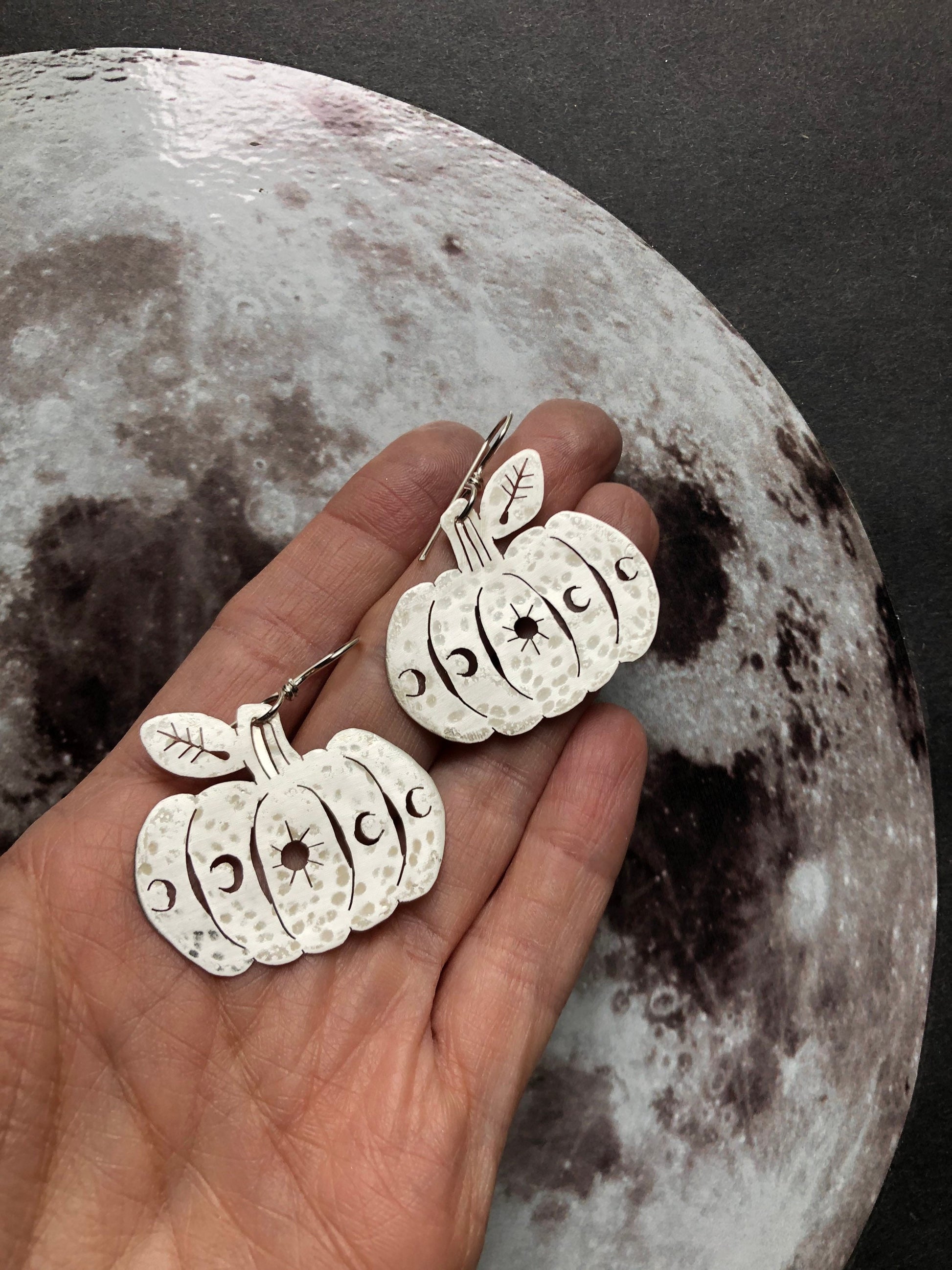 Handmade Celestial Pumpkin Earrings: Moon Phase Jewelry