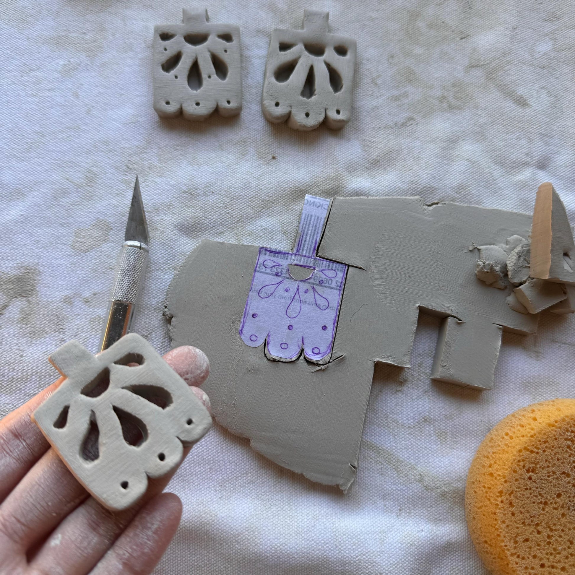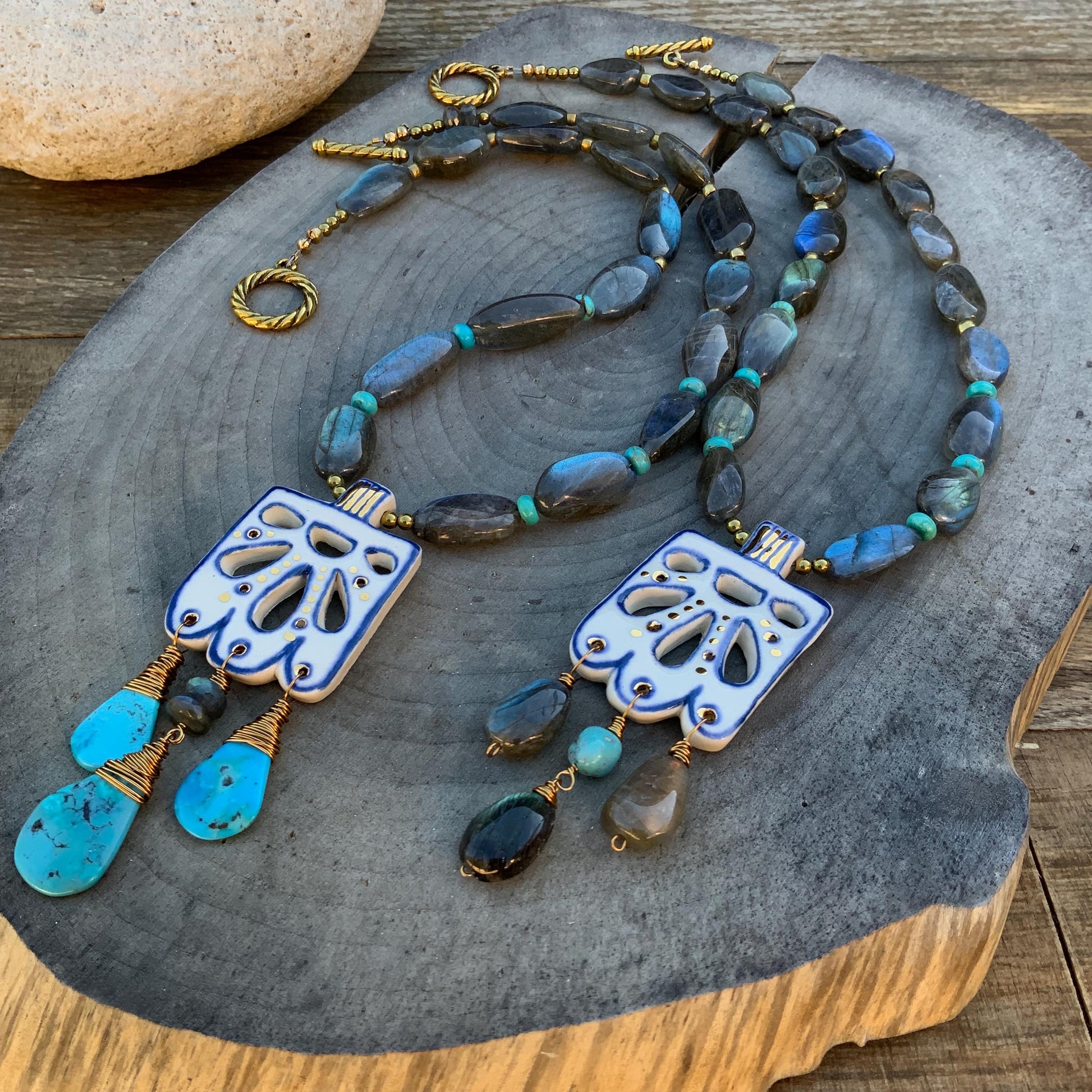 Handmade Ceramic Papel Picado Necklace: Labradorite & Turquoise Fringe