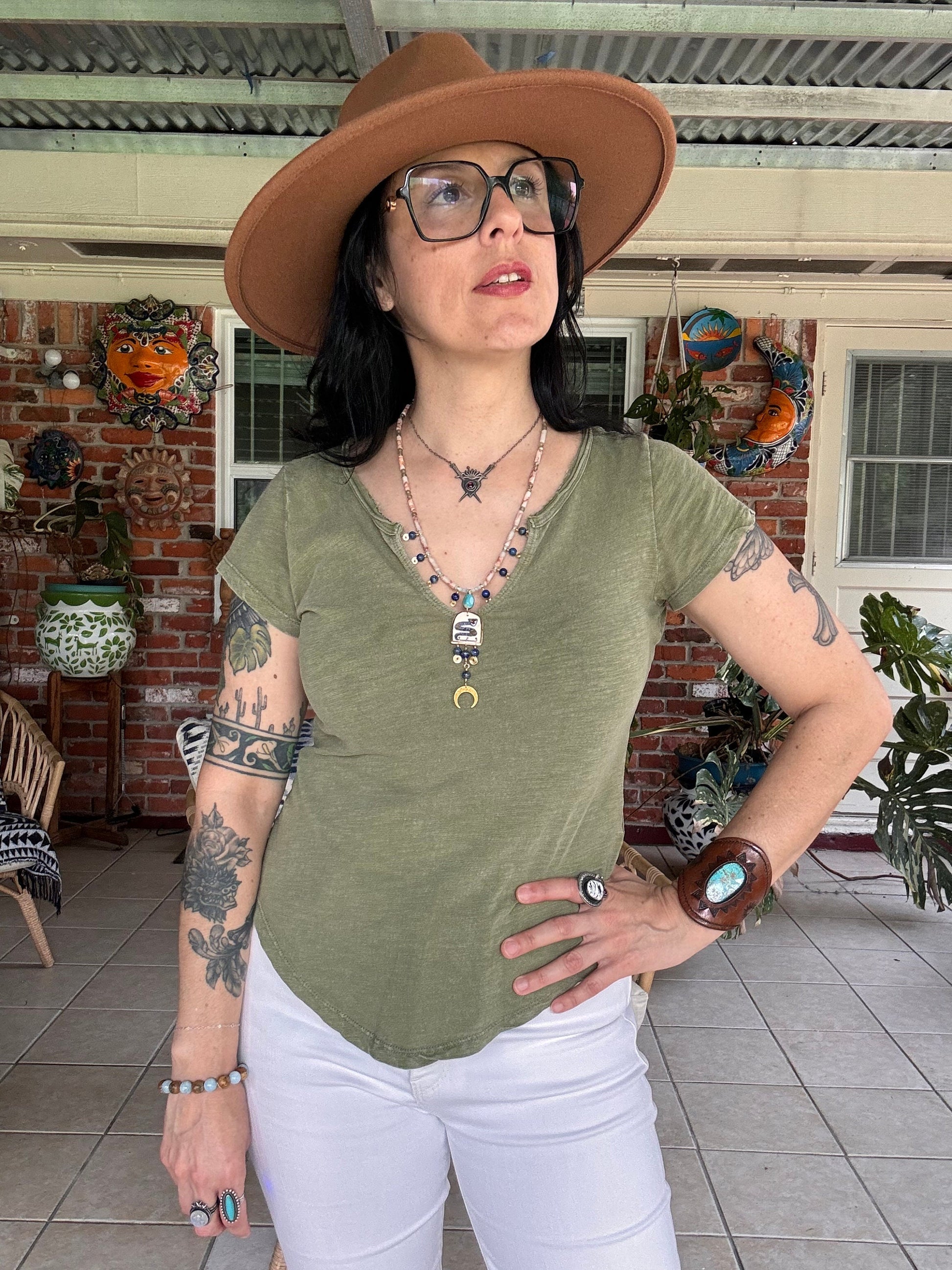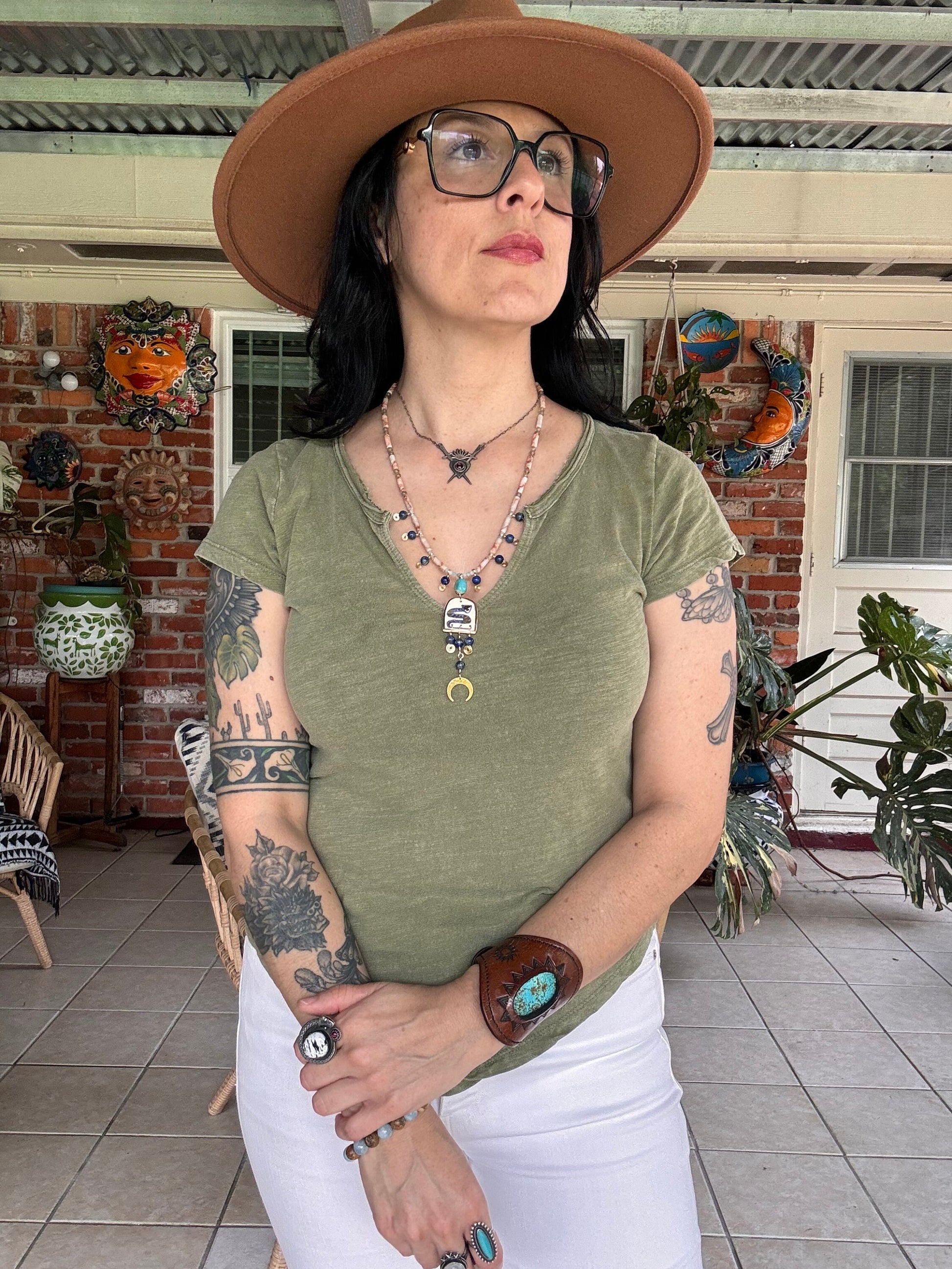 Slither into style with this enchanting handmade ceramic snake necklace! Featuring a whimsical ceramic snake bead paired with a gleaming brass crescent moon and rich lapis lazuli stone, this piece brings together celestial charm and earthy mystique. Perfect for those who embrace their wild side and love jewelry with personality. Each piece is uniquely crafted, making it a one-of-a-kind treasure for your collection.