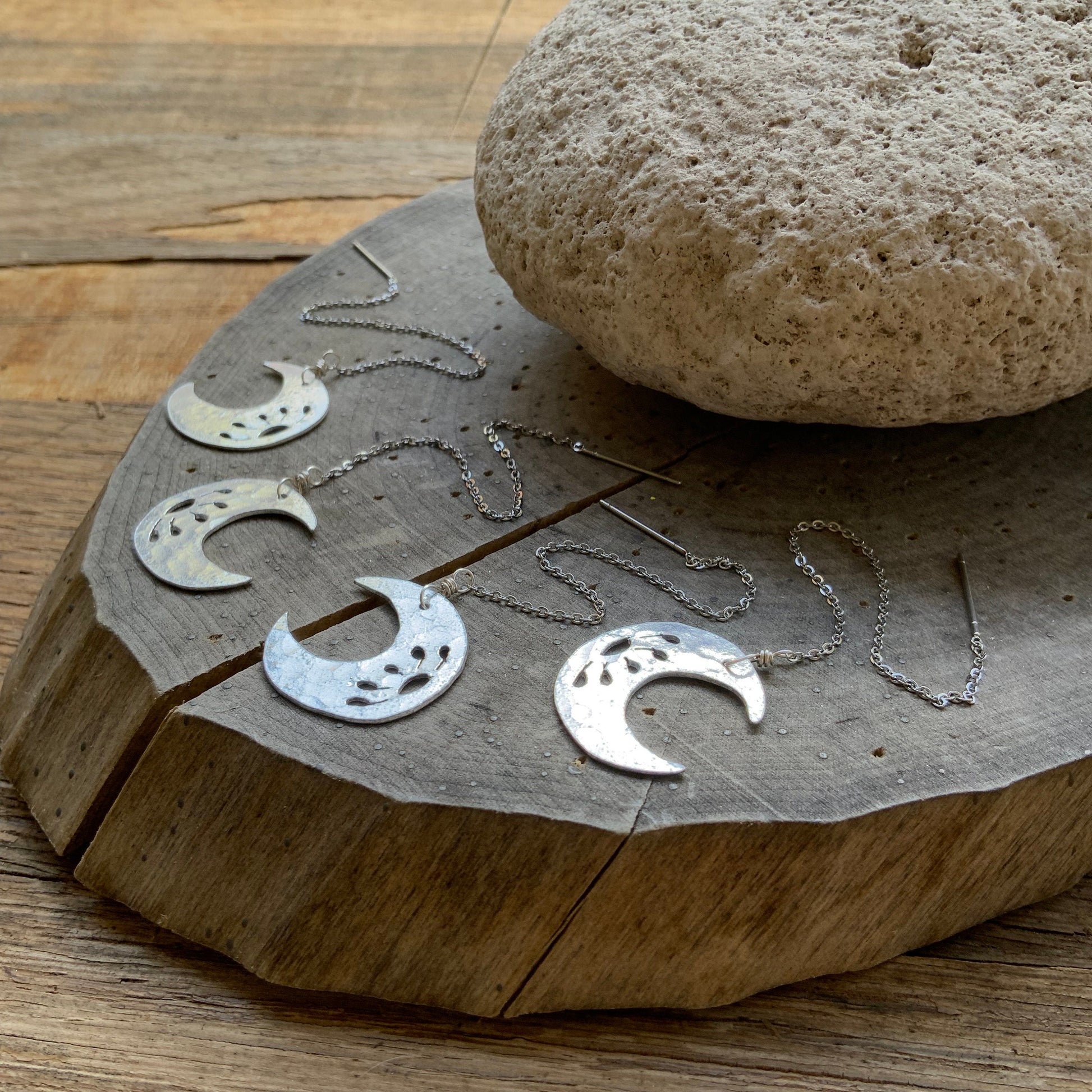 Handmade Crescent Moon Threader Earrings: Stainless Steel Dangle Jewelry