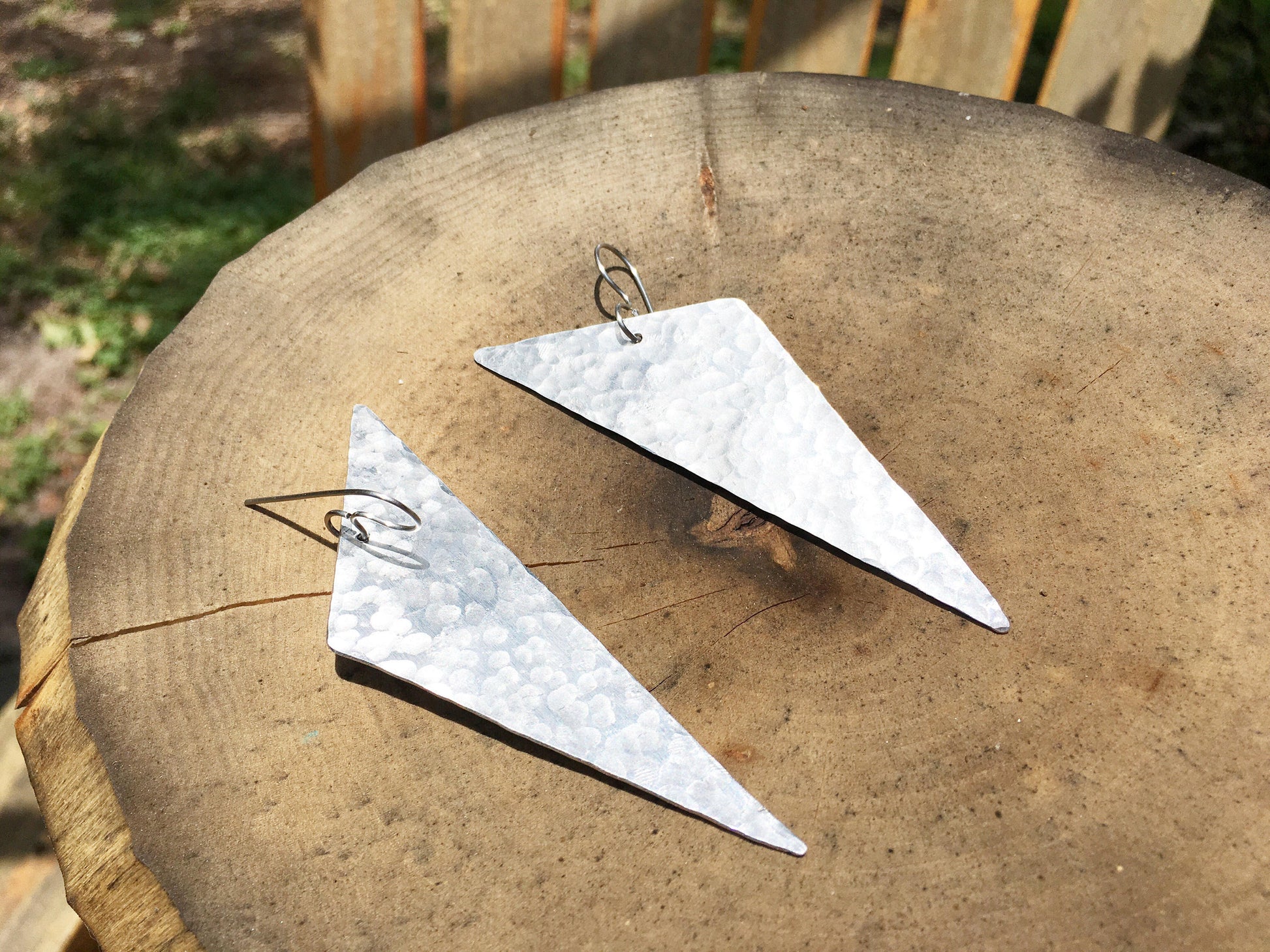 Step back in time with these striking geometric triangle earrings, where retro 1980s vibes meet modern craftsmanship. Each pair is hand-cut and textured to perfection, capturing that bold, angular aesthetic the decade was known for. Choose your metal—sleek brass, warm copper, or lightweight aluminum—and let your style shine. Perfect for anyone who loves statement jewelry with a nostalgic edge and artisanal soul.