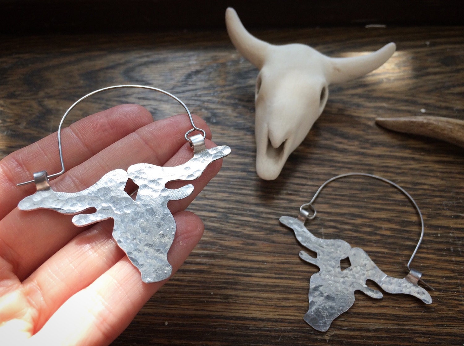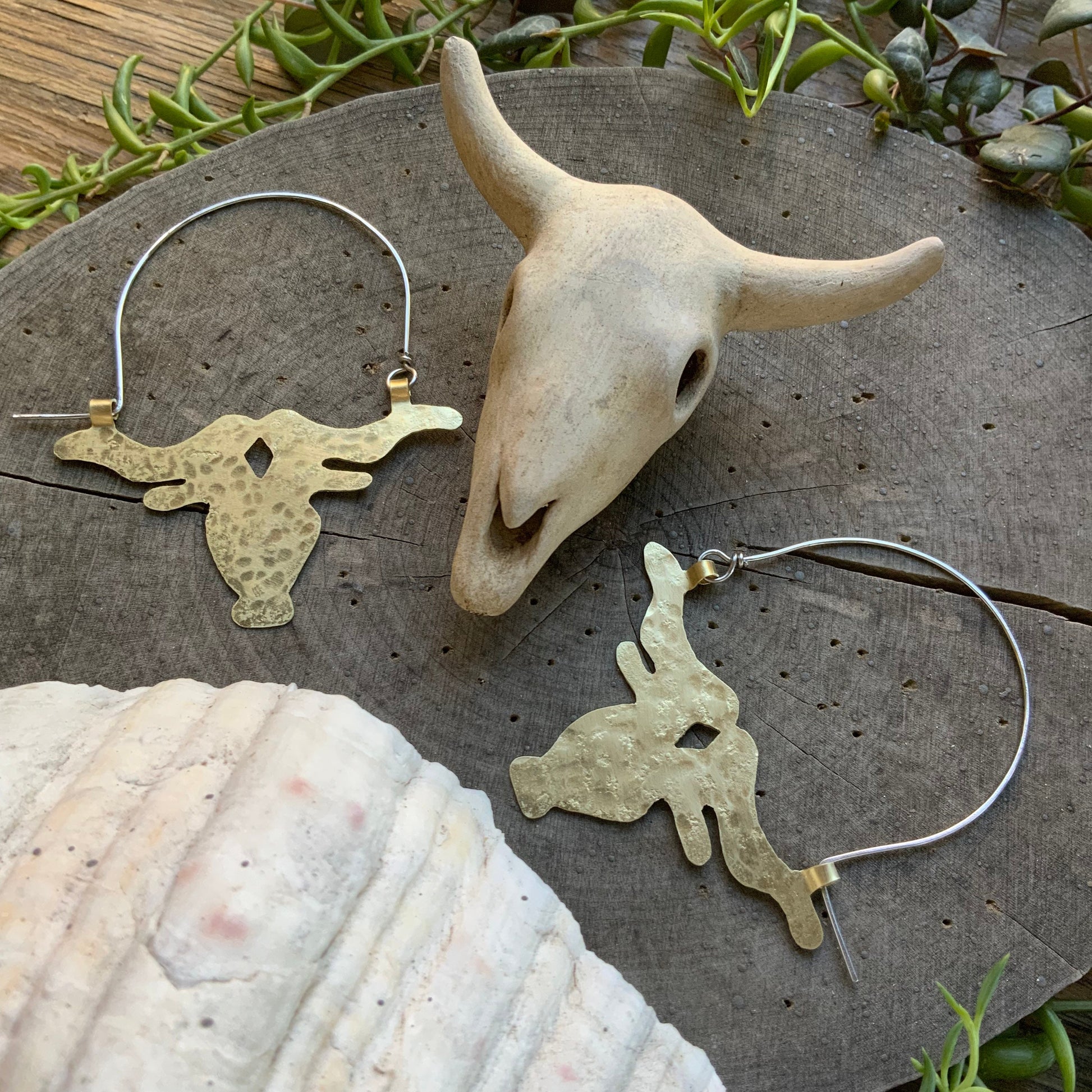 Handmade Longhorn Hoop Earrings: Brass, Copper, or Aluminum
