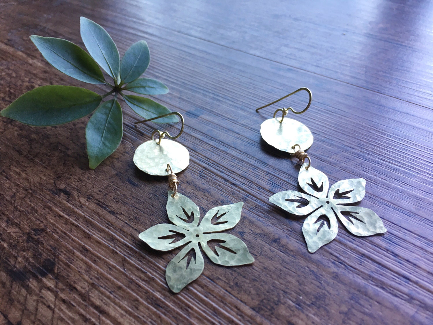 Handmade Metal Flower Earrings: Hammered Brass Dangles