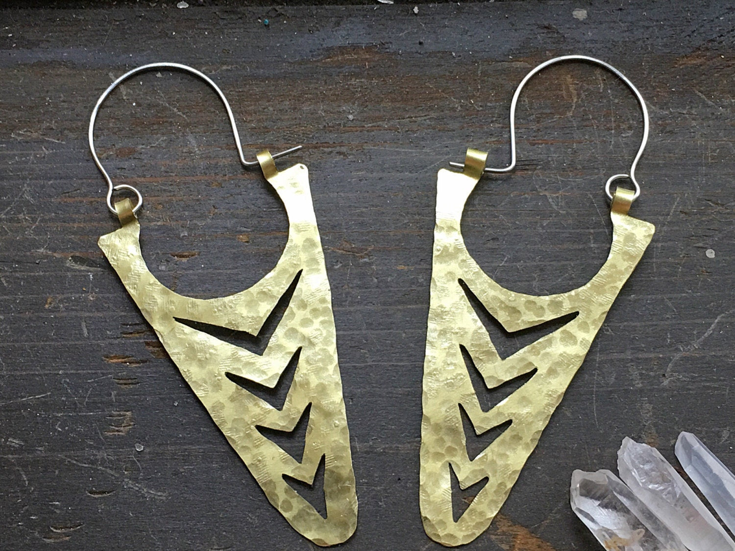 La Fletcha hoop earrings, metalwork arrow hoops, geometric jewelry, sculptural earrings