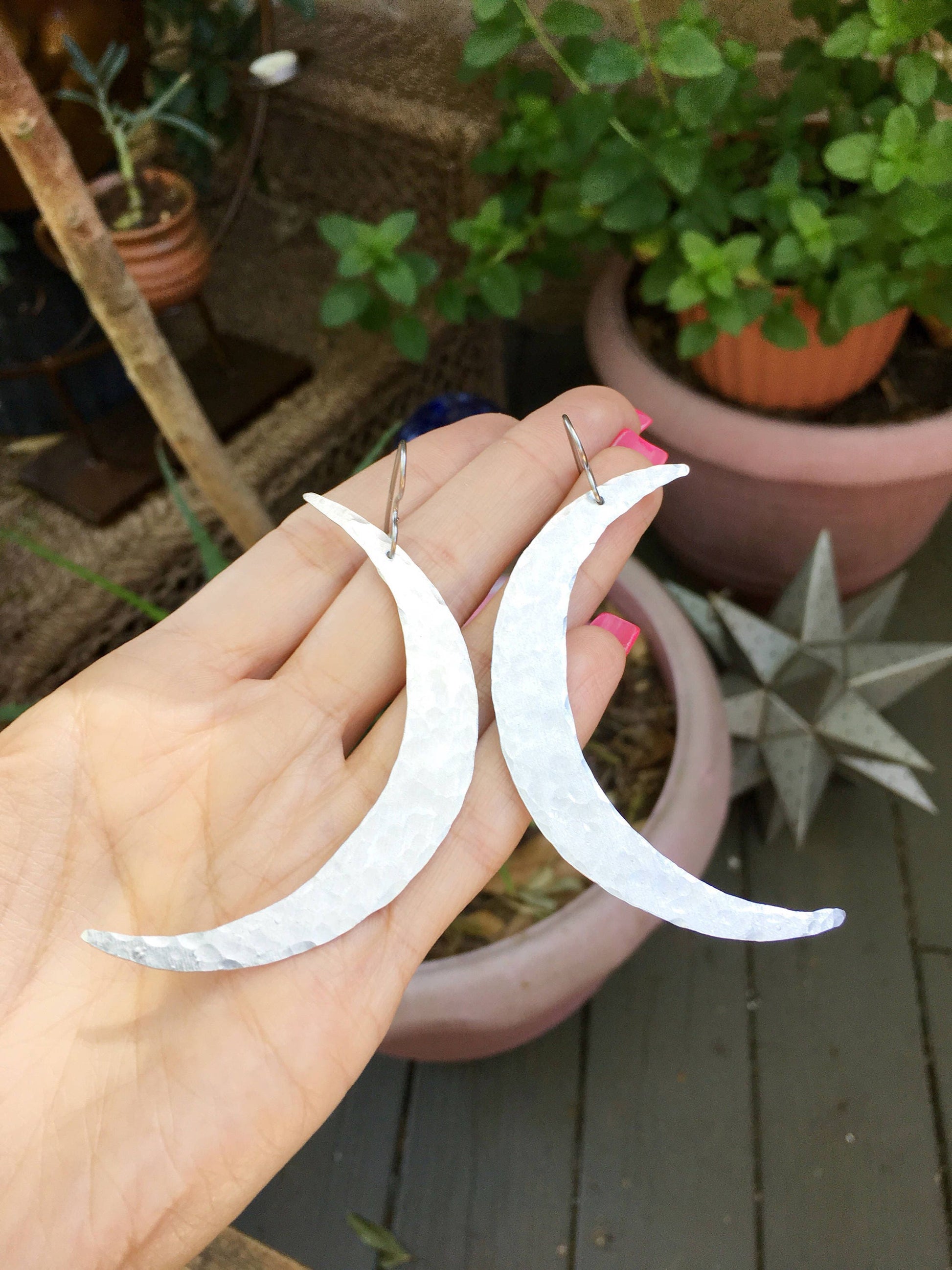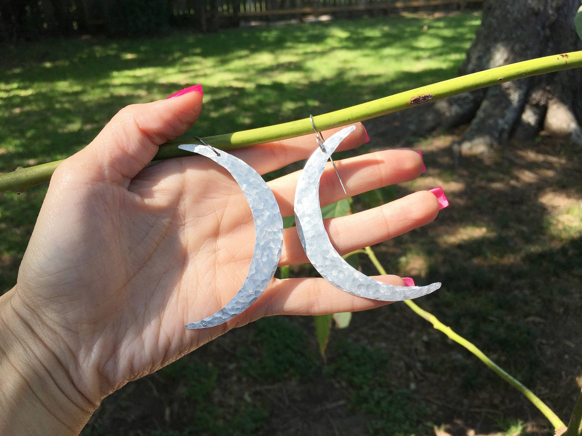 Large Crescent Moon Earrings: Handmade Brass or Copper Dangles