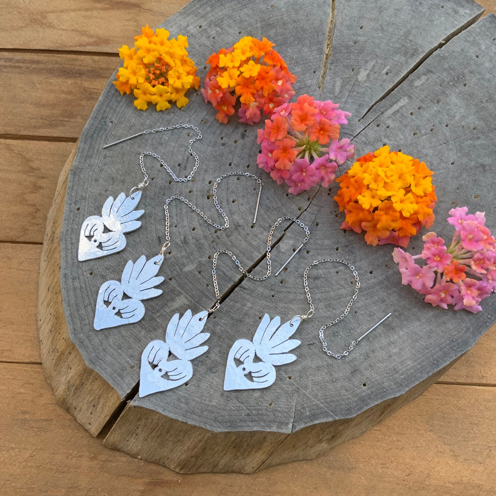 Milagro Sacred Heart Threader Earrings: Handmade Aluminum Dangle