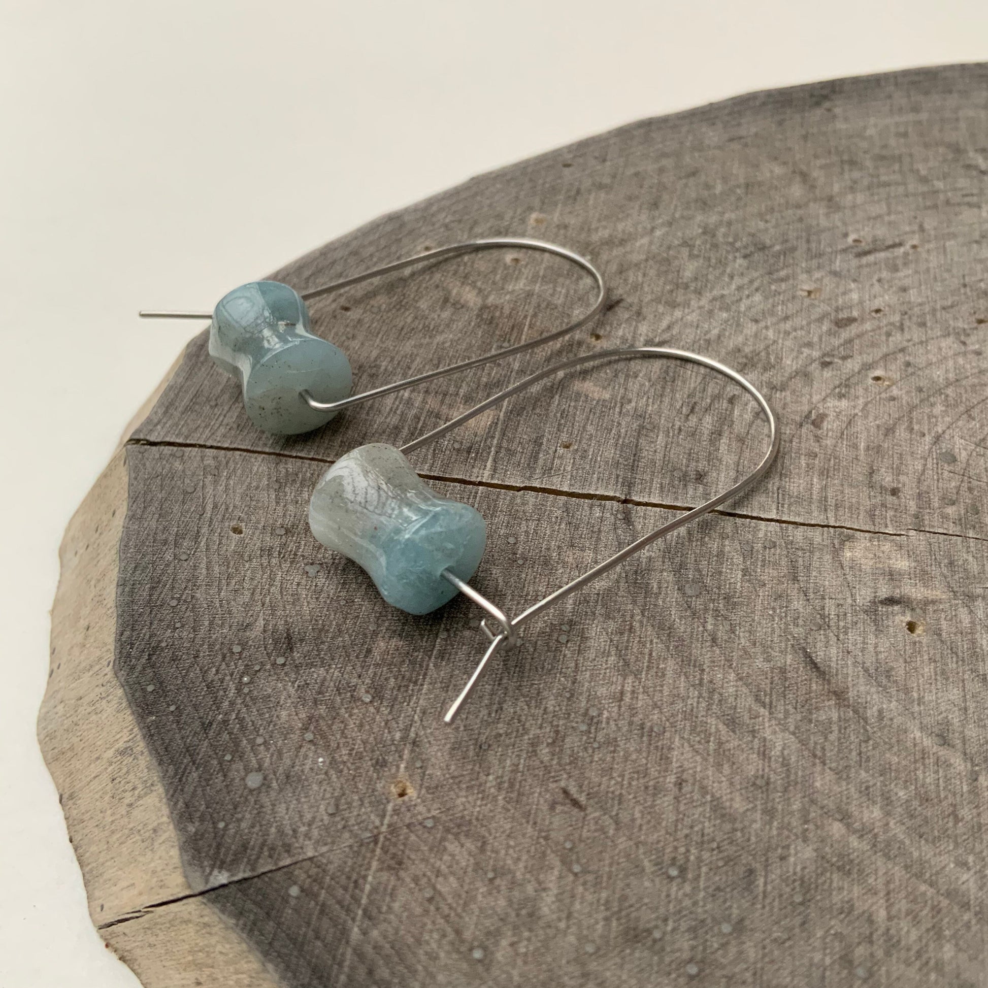 Modern Aquamarine hoop earrings, March birthstone latch back hoops