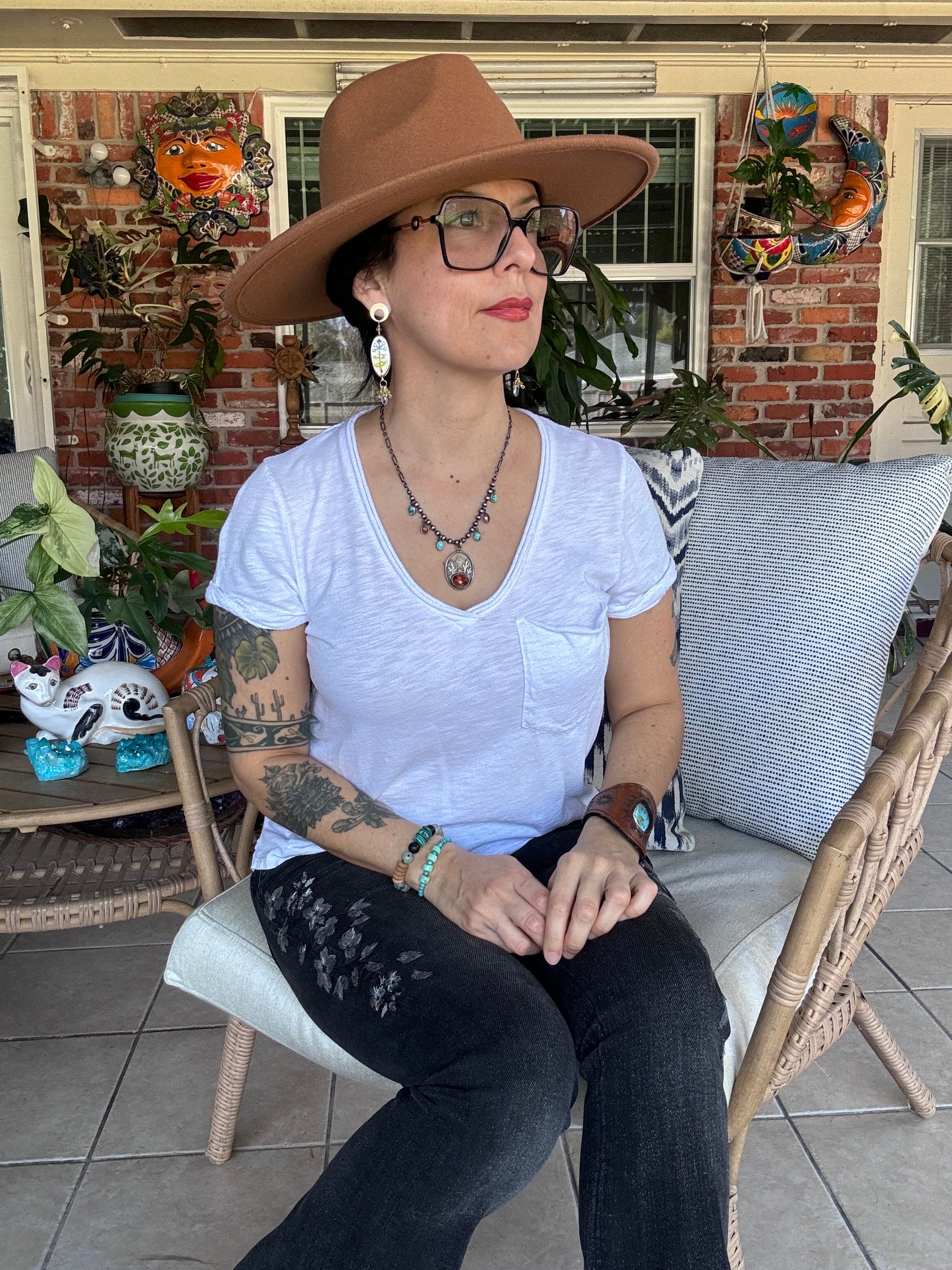 - rustic, ceramic beads with modern blue bonnet illustrations made by me