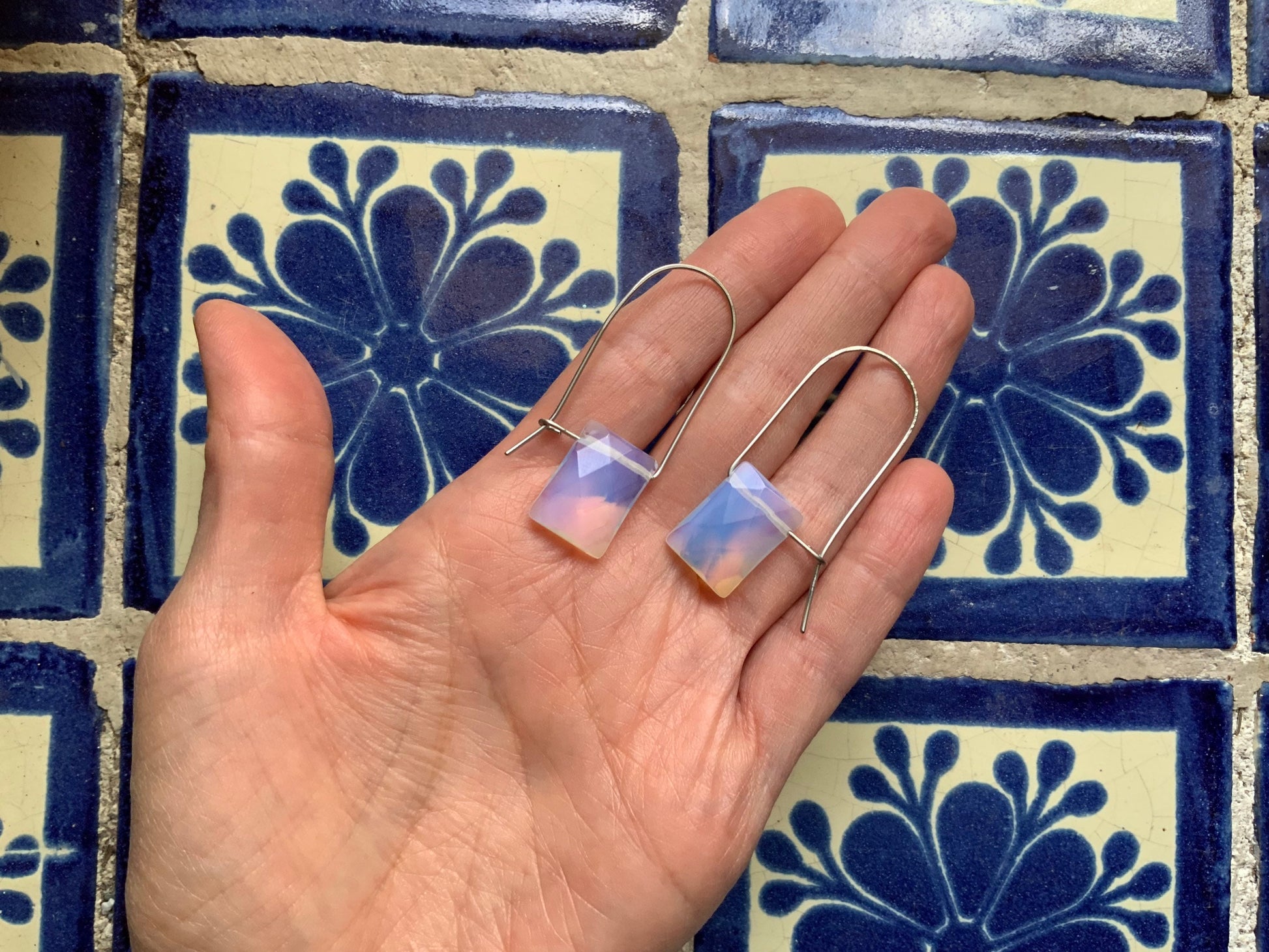Modern Opalite Quartz hoop earrings, glowing stone hoops
