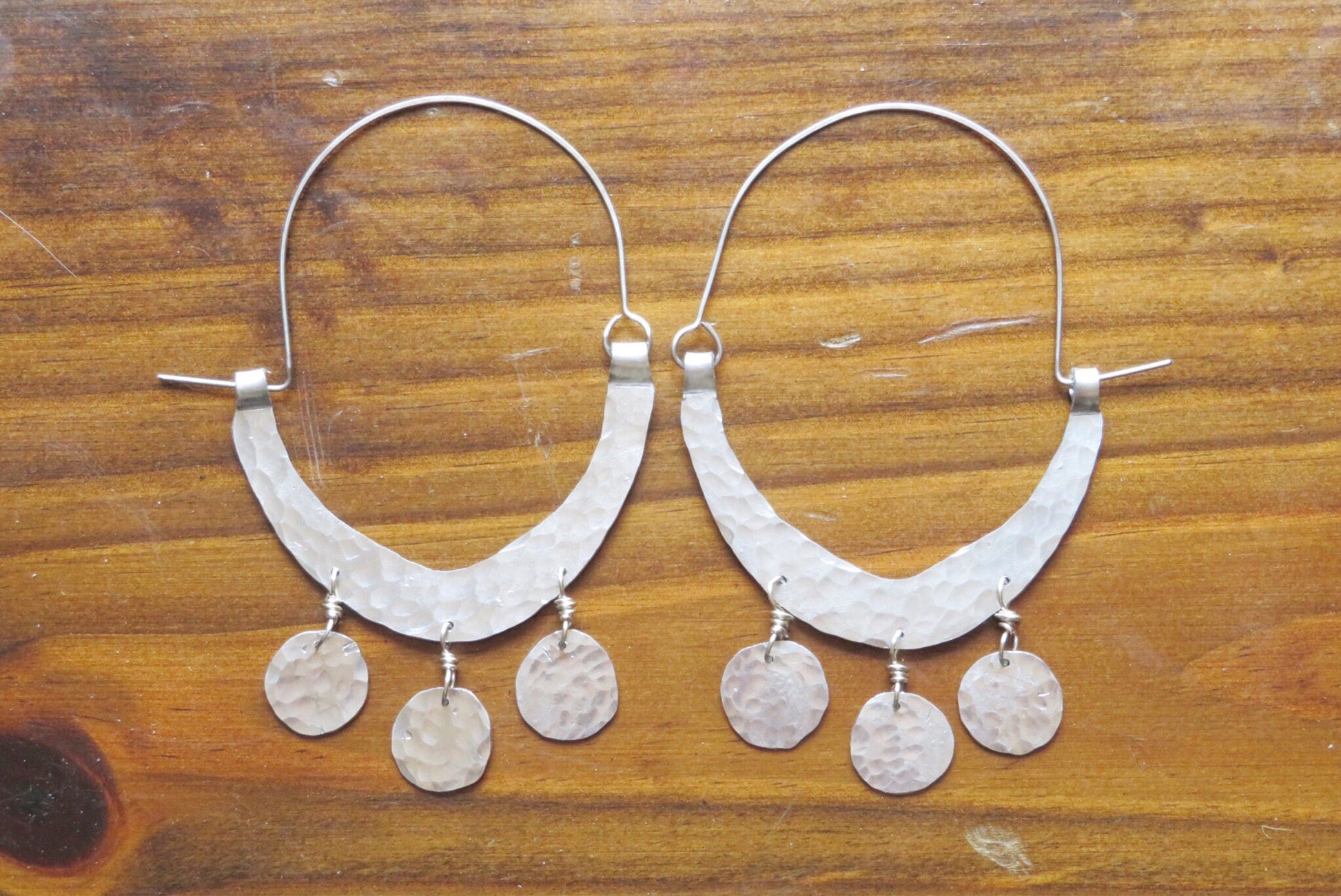 Rustic Hammered Coin Hoop Earrings: Handmade Metal Dangles