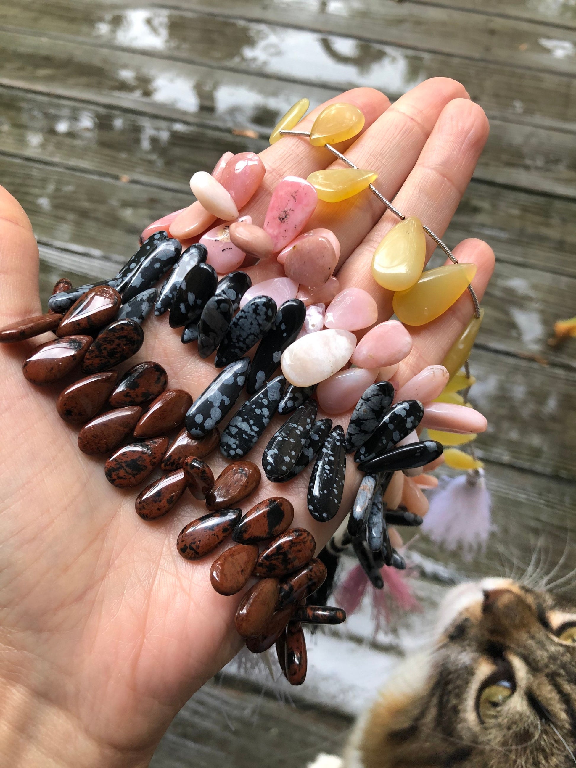 -choice of gemstone drop: genuine turquoise, mahogany obsidian, pink opal, yellow opal and snowflake obsidian